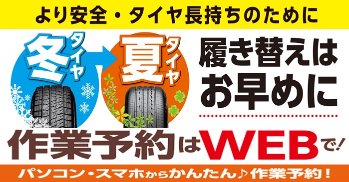 冬タイヤ⇒夏タイヤへの履き替えはWEB予約が便利です♪