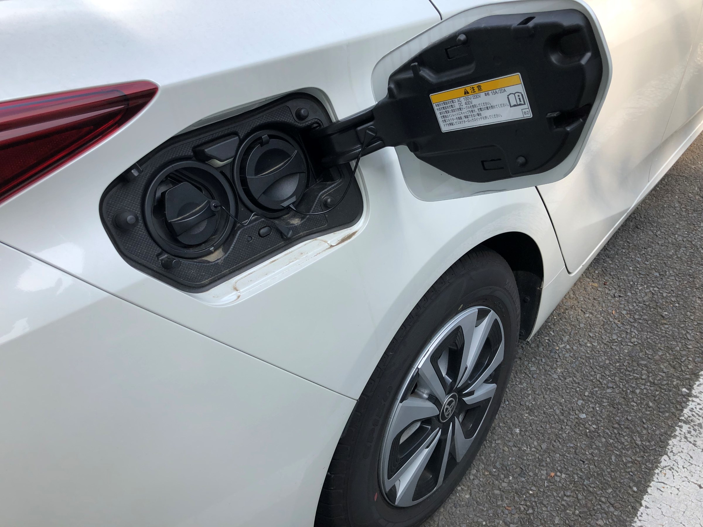 でもって借りた車ですから返すときには使った燃料は補充して返却しなければいけないのですがこの車はプラグインハイブリッドです。ガソリンと電気が燃料です。