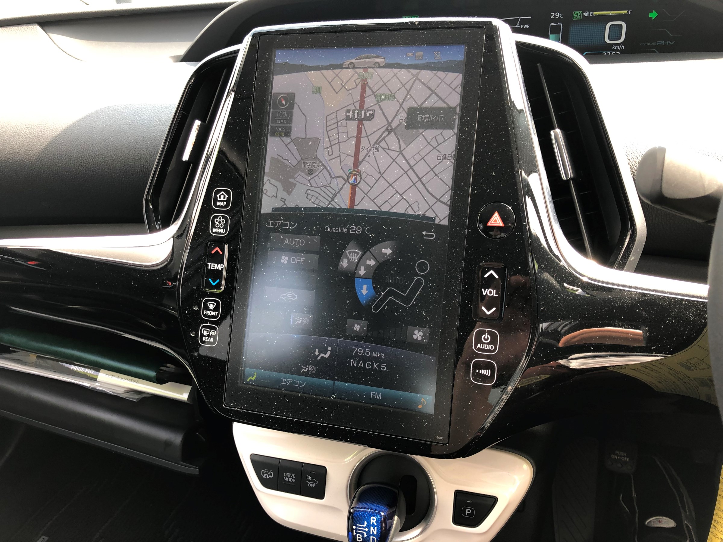 内装も新しい車らしくオーディオやエアコン操作も大きなマルチディスプレイで操作するようになってます。画面でかいです。CDが入るところがないです!もう音楽はCDではなくブルートゥースで聞く時代なんですね。
