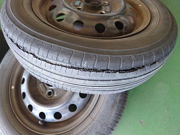 皆さんこんにちは(^▽^)/ タイヤ館おもちゃのまち店です いつもご覧いただきありがとうございます! 本日飛び込みでお車 三菱 eKワゴン(82型)がご来店くださいました! タイヤがこんな事になってました… バースト寸前でした… 今回は ブリヂストン NEWNO 155/65R13 入れていただきました(^^) バースト...