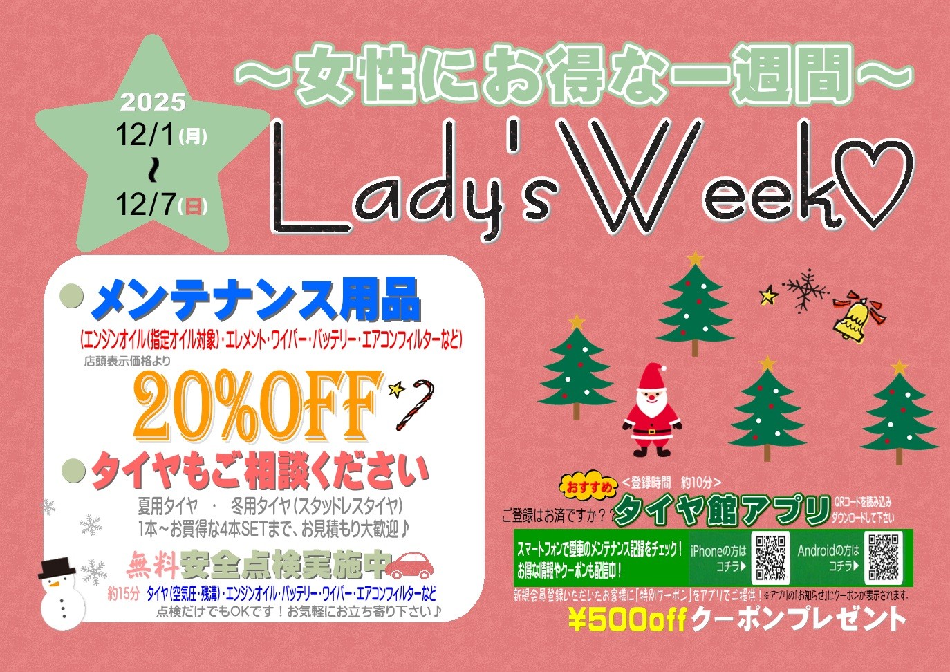 【大牟田・荒尾近辺にお住まいの方】 12月1日〜7日限定イベント レディースウィーク開催いたします!