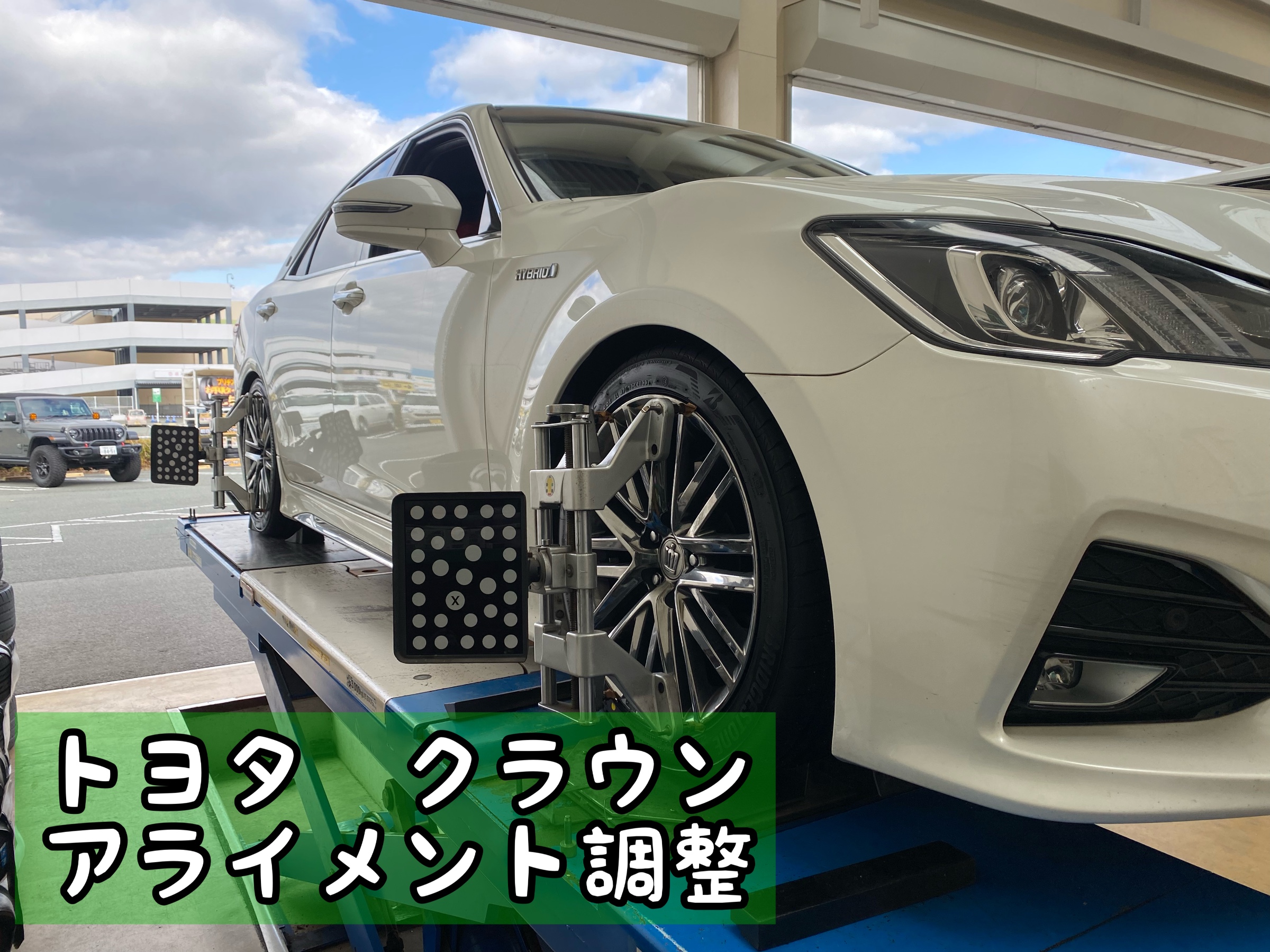 タイヤ館イオンモール大牟田店の川島です。今回はトヨタ・クラウンのアライメント調整をさせていただきました。