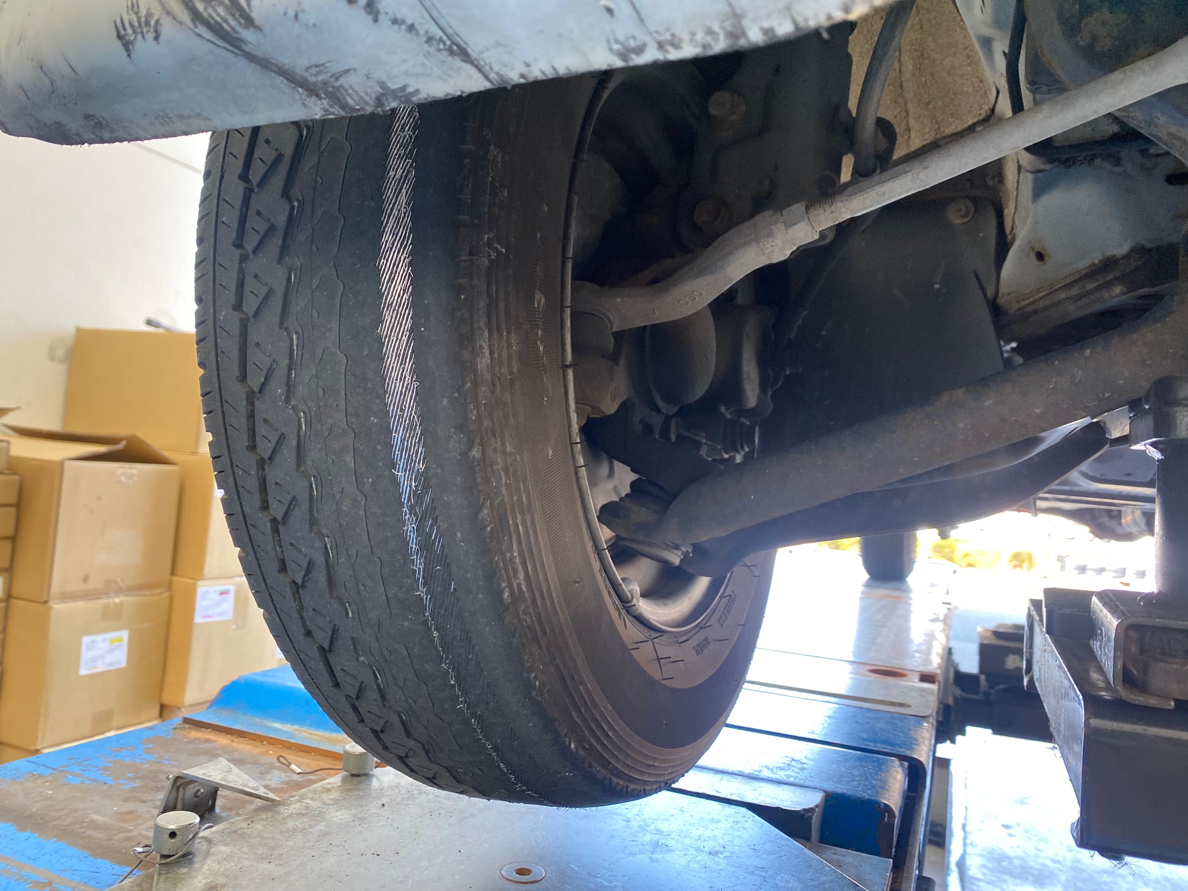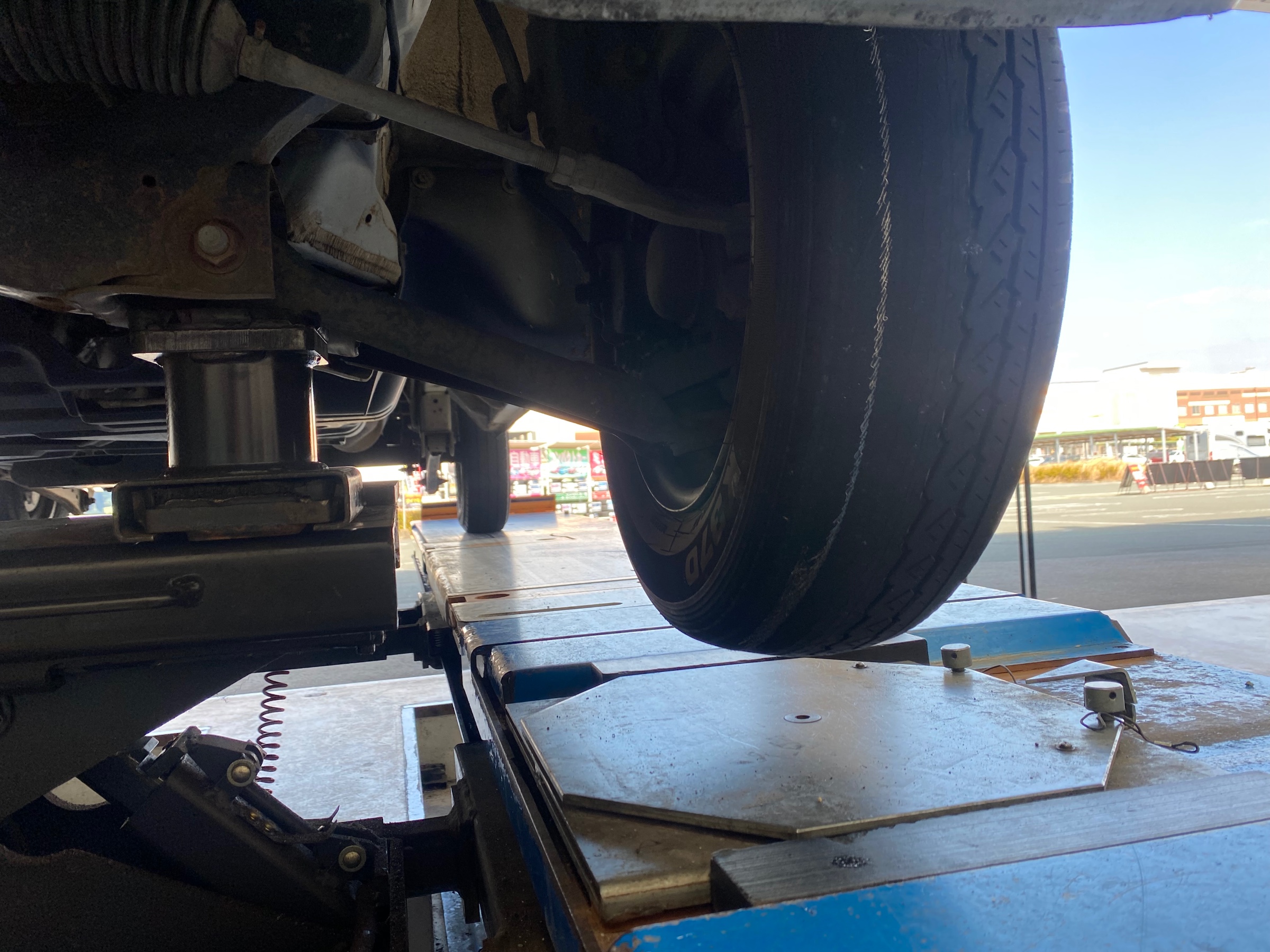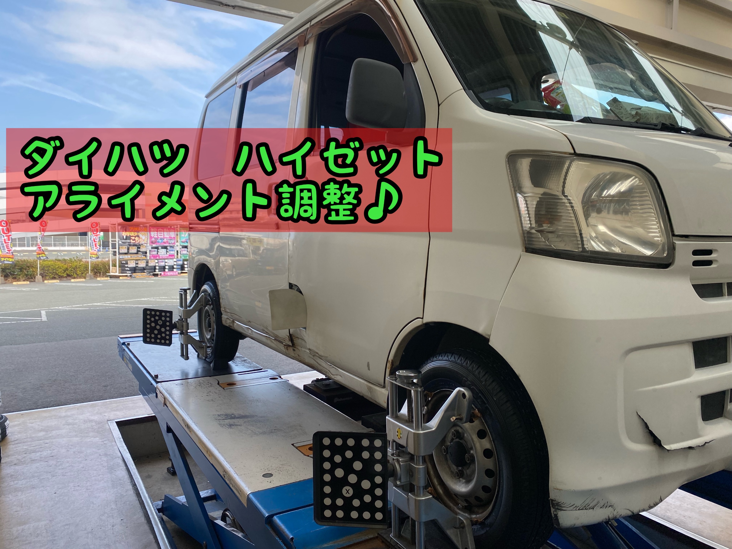 タイヤ館イオンモール大牟田店の川島です。今回はダイハツ・ハイゼットのアライメント調整をさせていただきました。