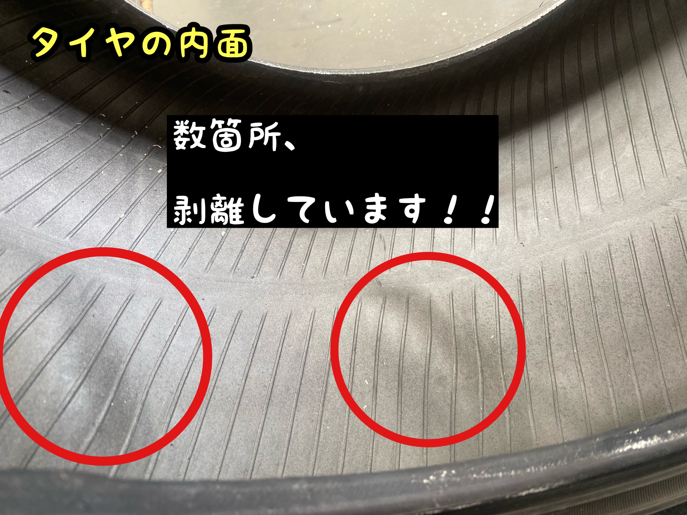 この様にタイヤ側面にコブが出来ていたら、即交換をオススメします!!