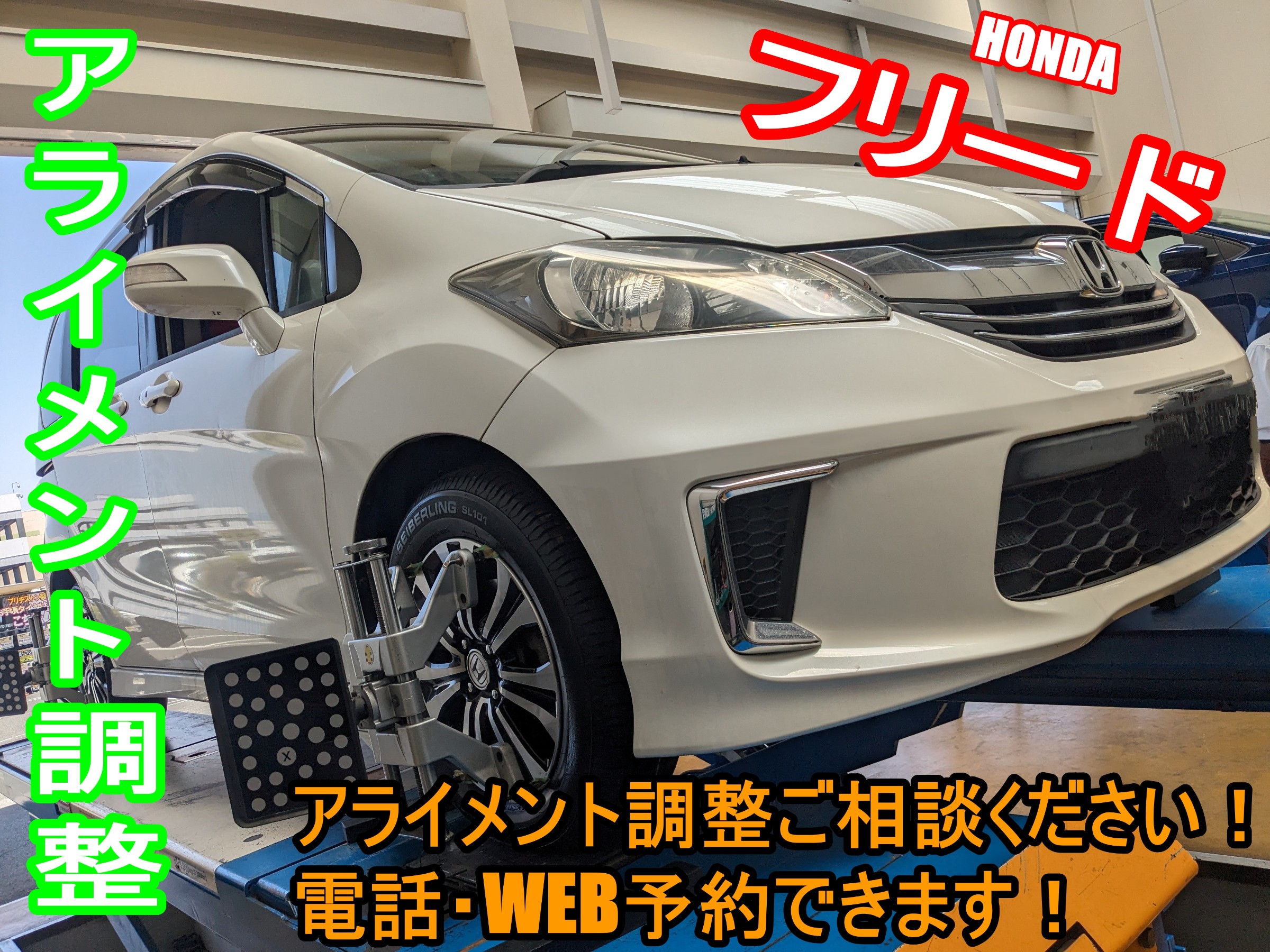 【WEBを見てのご来店】アライメント調整 ホンダ フリード ※タイヤを長持ちさせたい為!