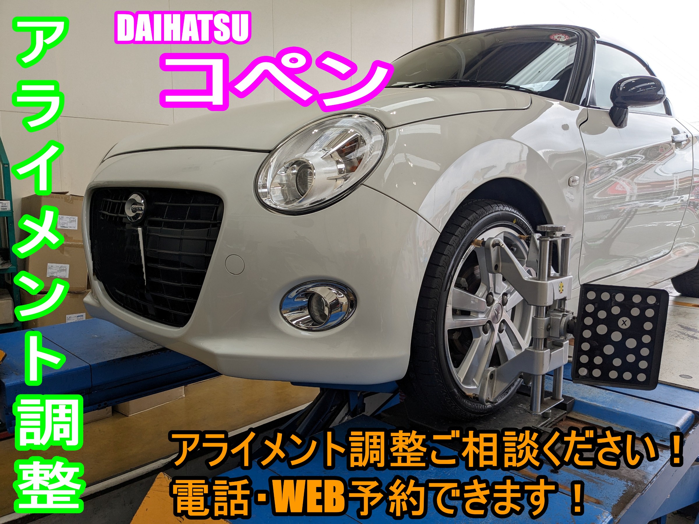 【初めてのご来店】アライメント調整 ダイハツ コペン ※内減りが気になられたため!