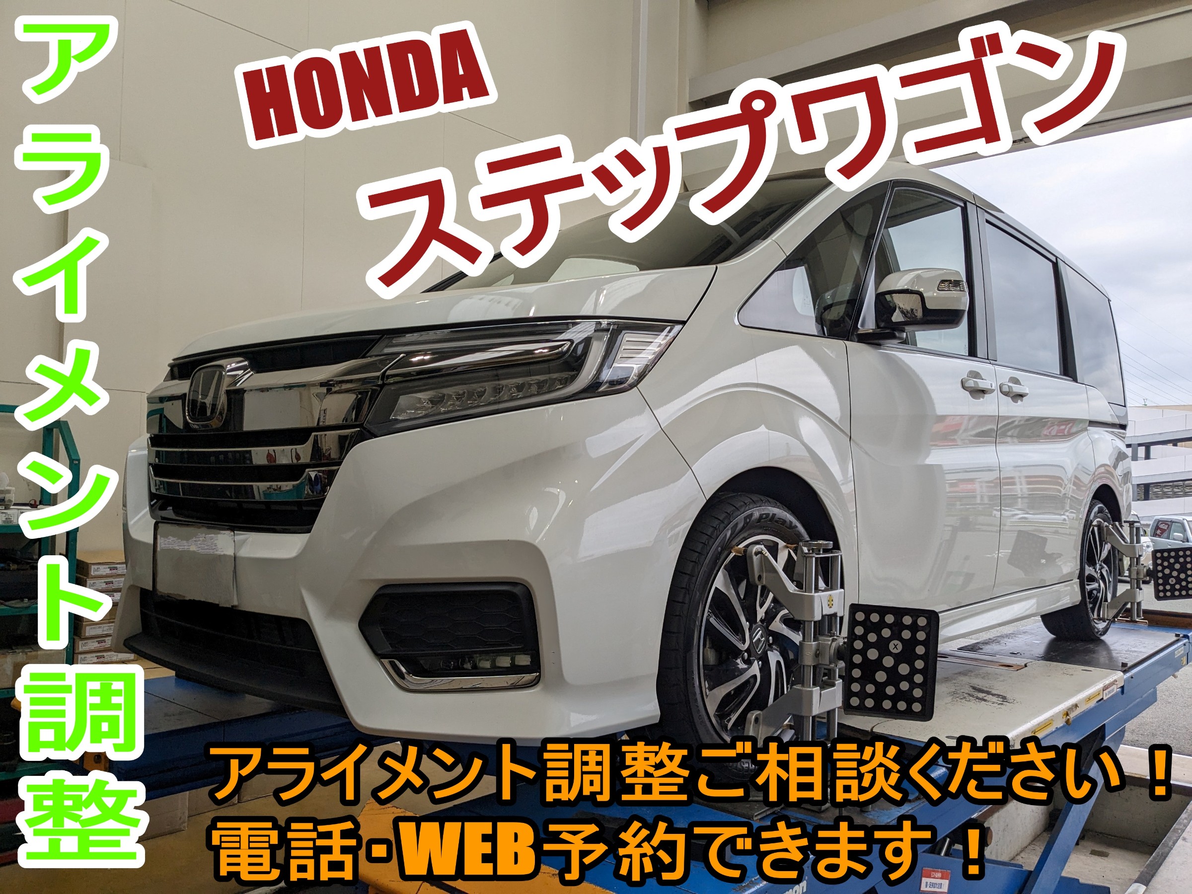 【WEBを見てのご来店】アライメント調整 ホンダ ステップワゴン ※タイヤを長持ちさせたい為!