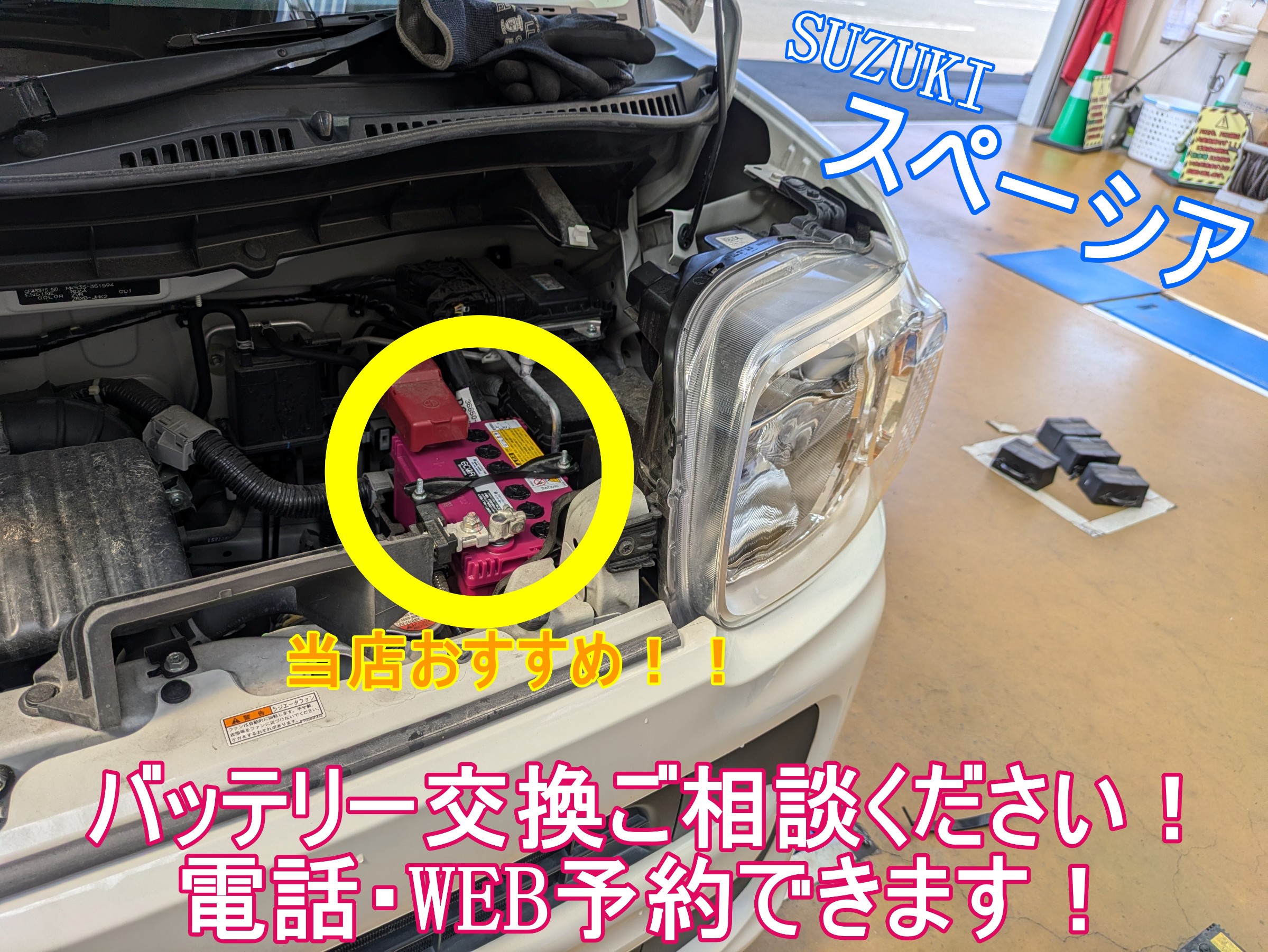 【WEBを見てのご来店】 《バッテリー交換》 スズキ スペーシア