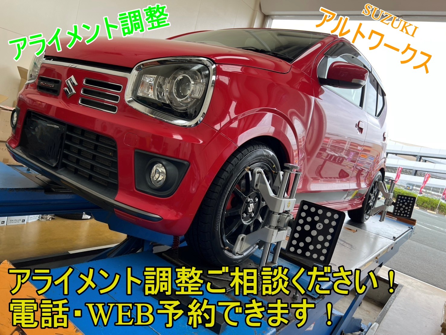 【WEBを見てのご来店】アライメント調整 スズキ アルトワークス ※タイヤを長持ちさせたい為