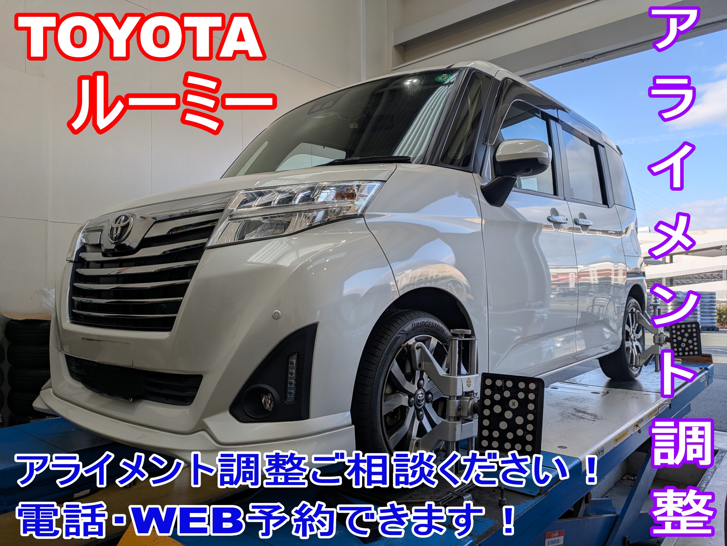【WEBを見ての初めてのご来店】アライメント調整 トヨタ ルーミー ※タイヤを長持ちさせたい為