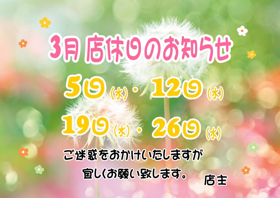 お客様に3月の店休日のお知らせです。