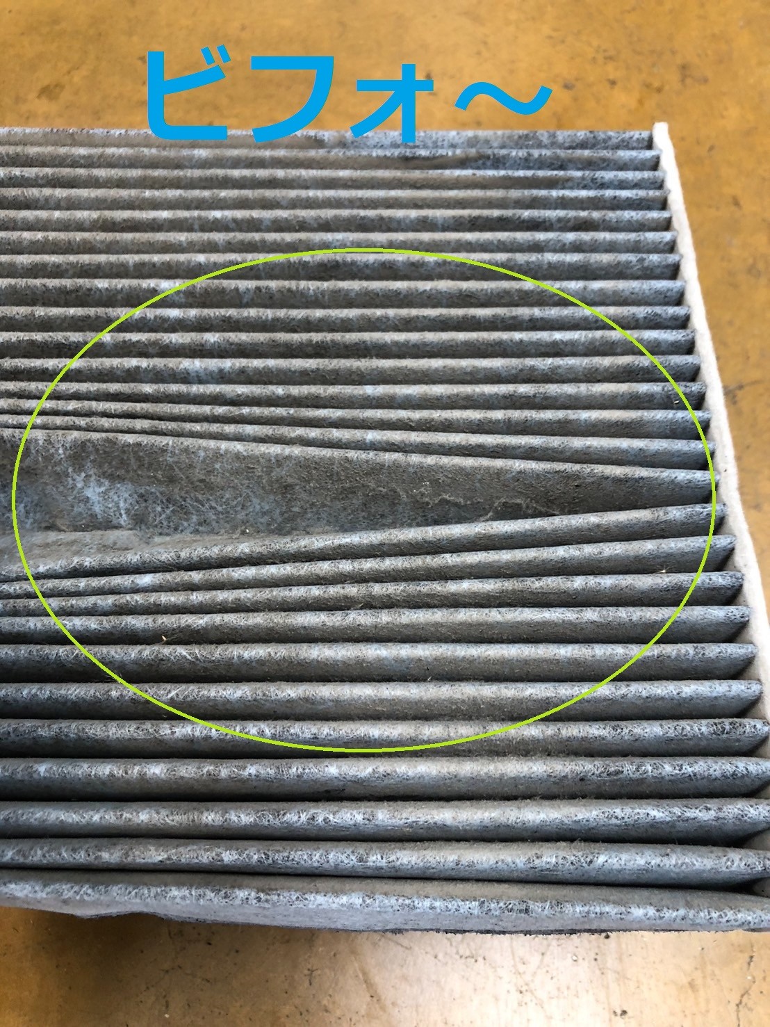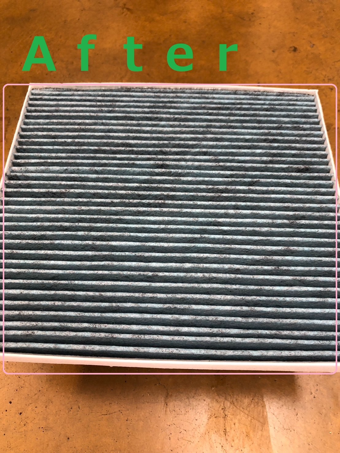 今回はエアコンフィルターの新品、使用済の比較です。
