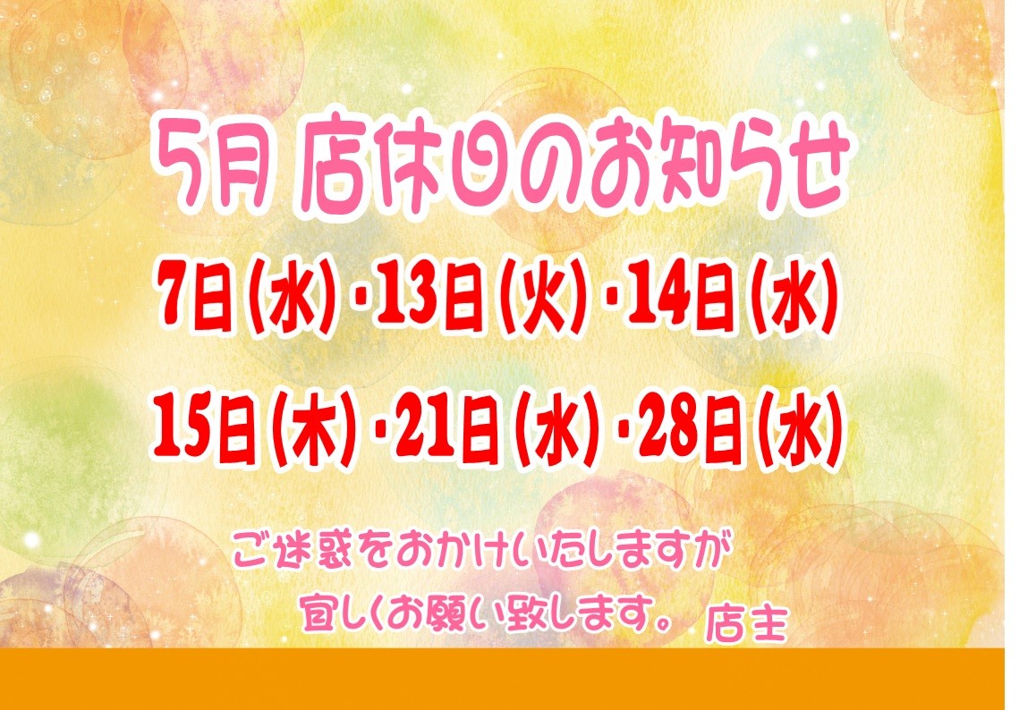 5/7(水)・5/13(火)・5/14(水)・5/15(木)・5/21(水)・5/28(水)