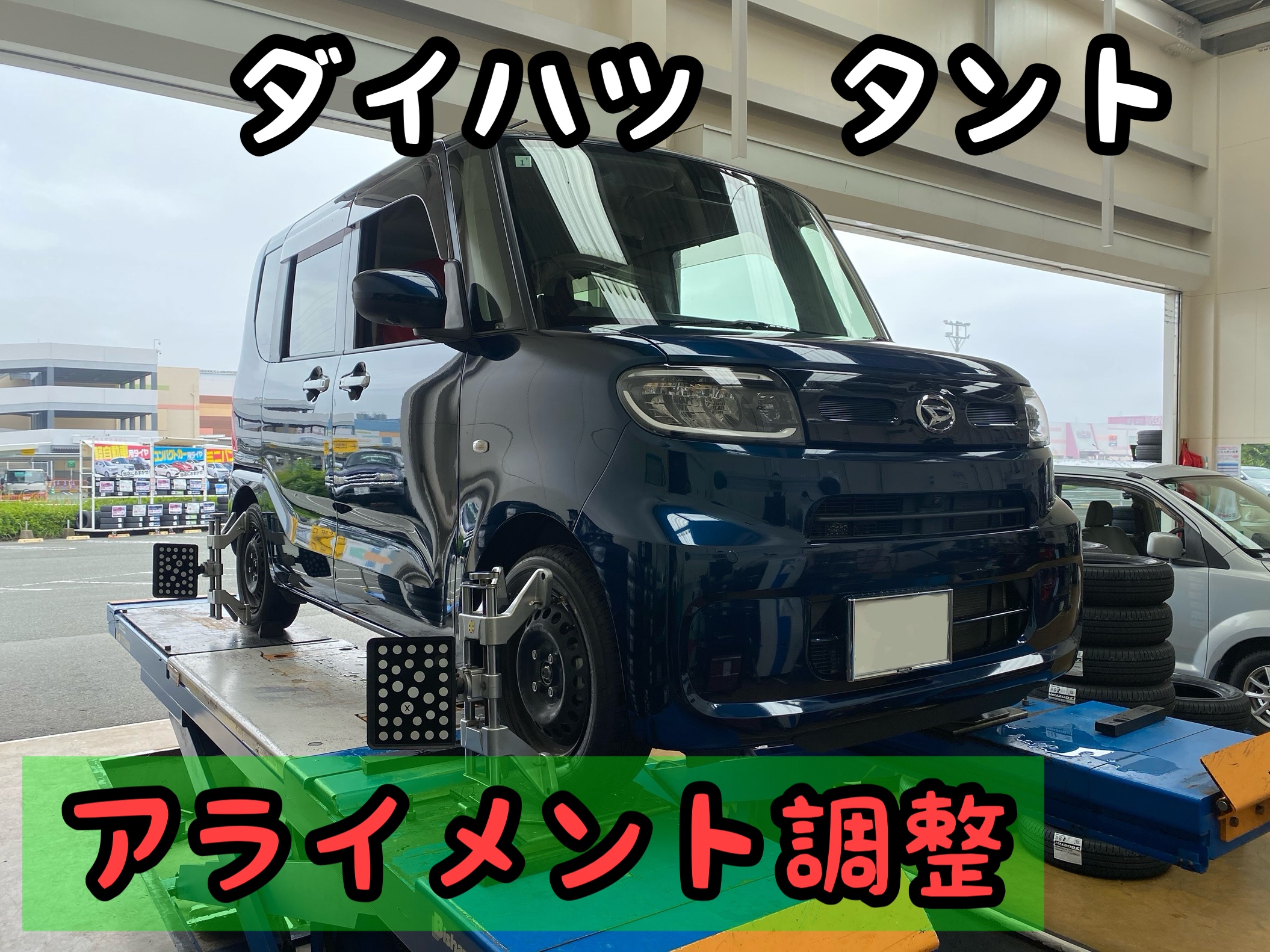 今回はダイハツ・タントのアライメント調整をさせていただきました。