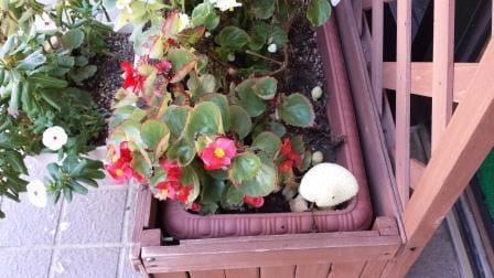 今日の朝、お花に水をあげていると白い物体が・・・・