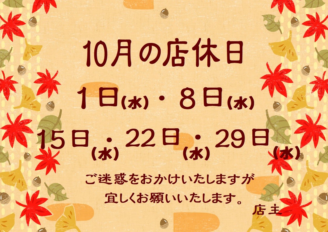 こんにちは! イオンモール大牟田の敷地内にあります タイヤ館イオンモール大牟田です。 HPをご覧いただきありがとうございます(*^^*)お客様に10月の店休日についてお知らせです。 10/1(水)・10/8(水)・10/15(水)・10/22(水)・10/29(水) を10月の店休日とさせていただきます。 お客様には...