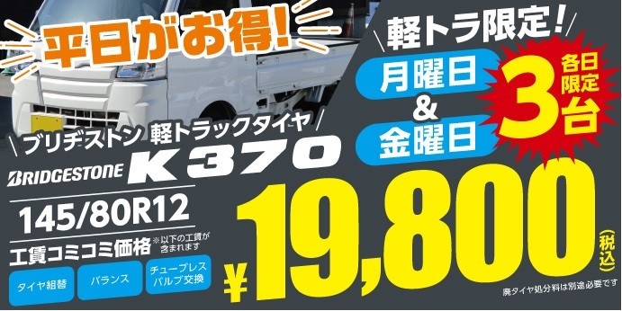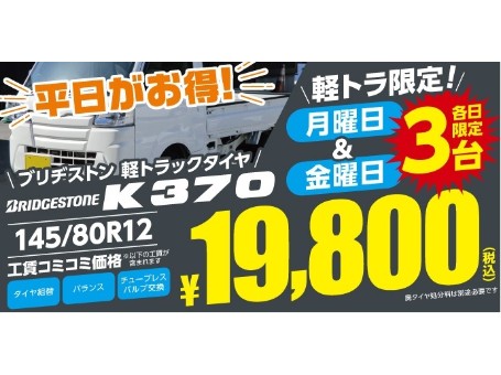 軽トラックタイヤ K370 平日がお得!(月)&(金)3台限定