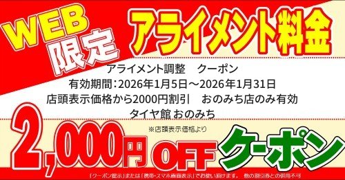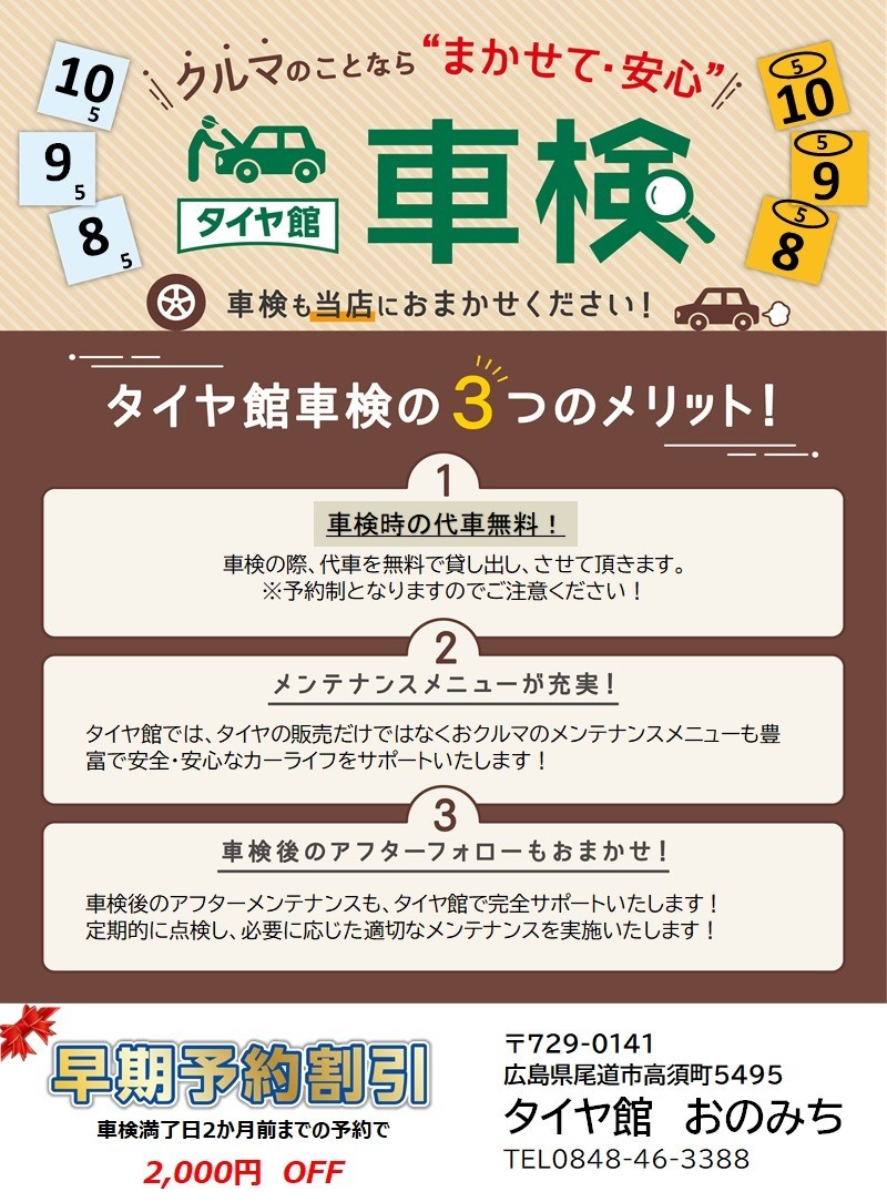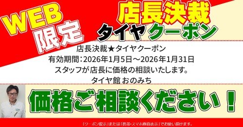 タイヤ館おのみちも車検受付中!!2026年営業開始は1月5日からです!