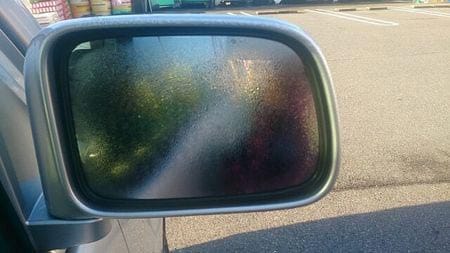 車のミラーがくもってました。