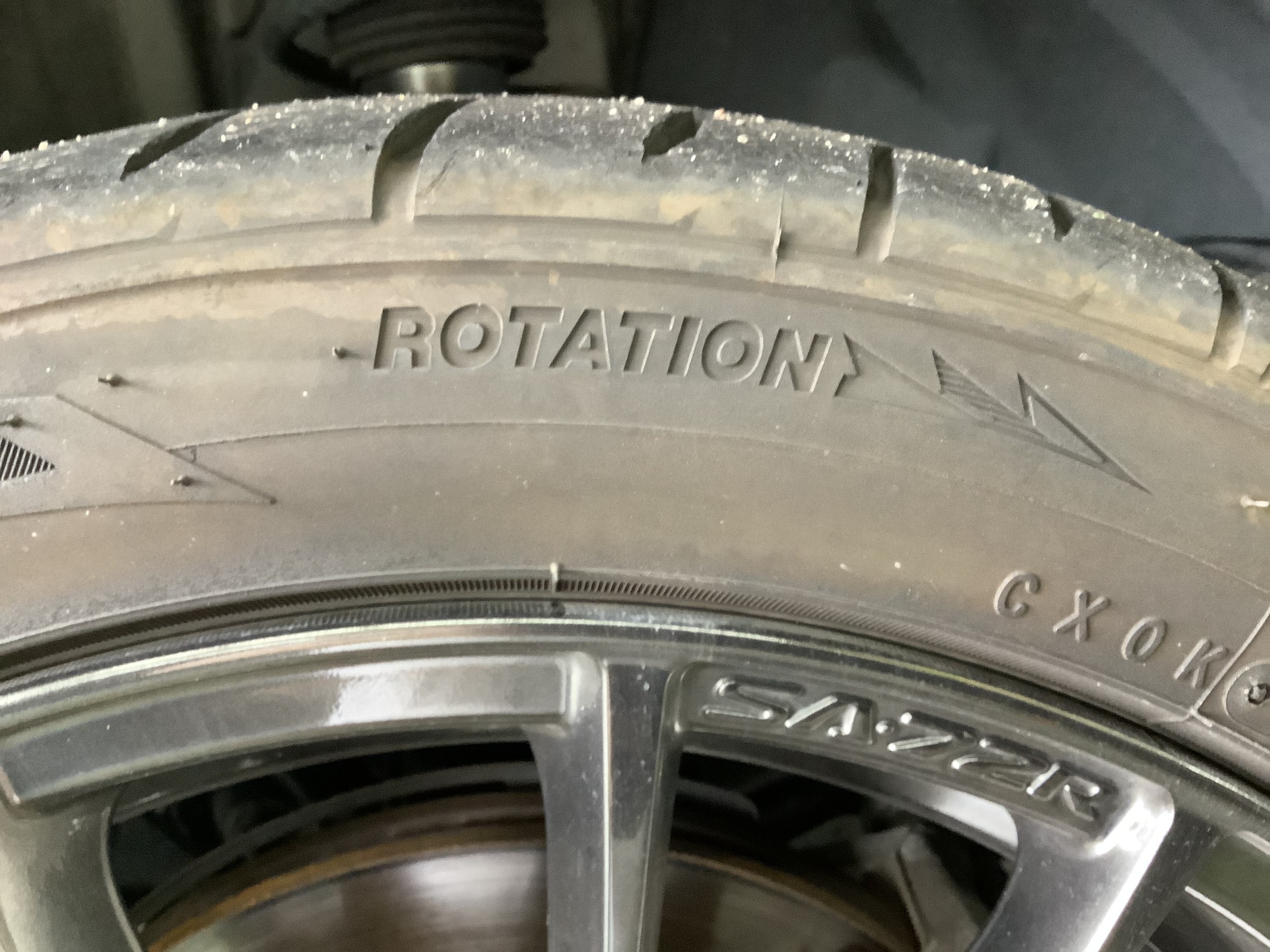 タイヤ側面に ROTATION と書かれているのと 矢印 があるのがわかりますね。