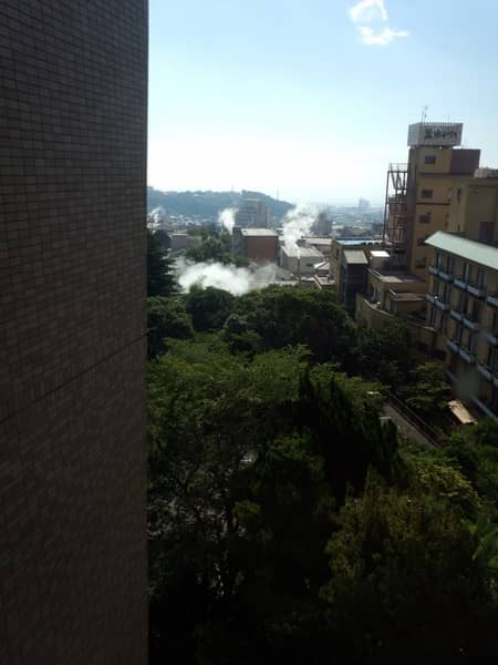 泊まった旅館につくと周りが湯気だらけでさすが温泉街だと思いました。