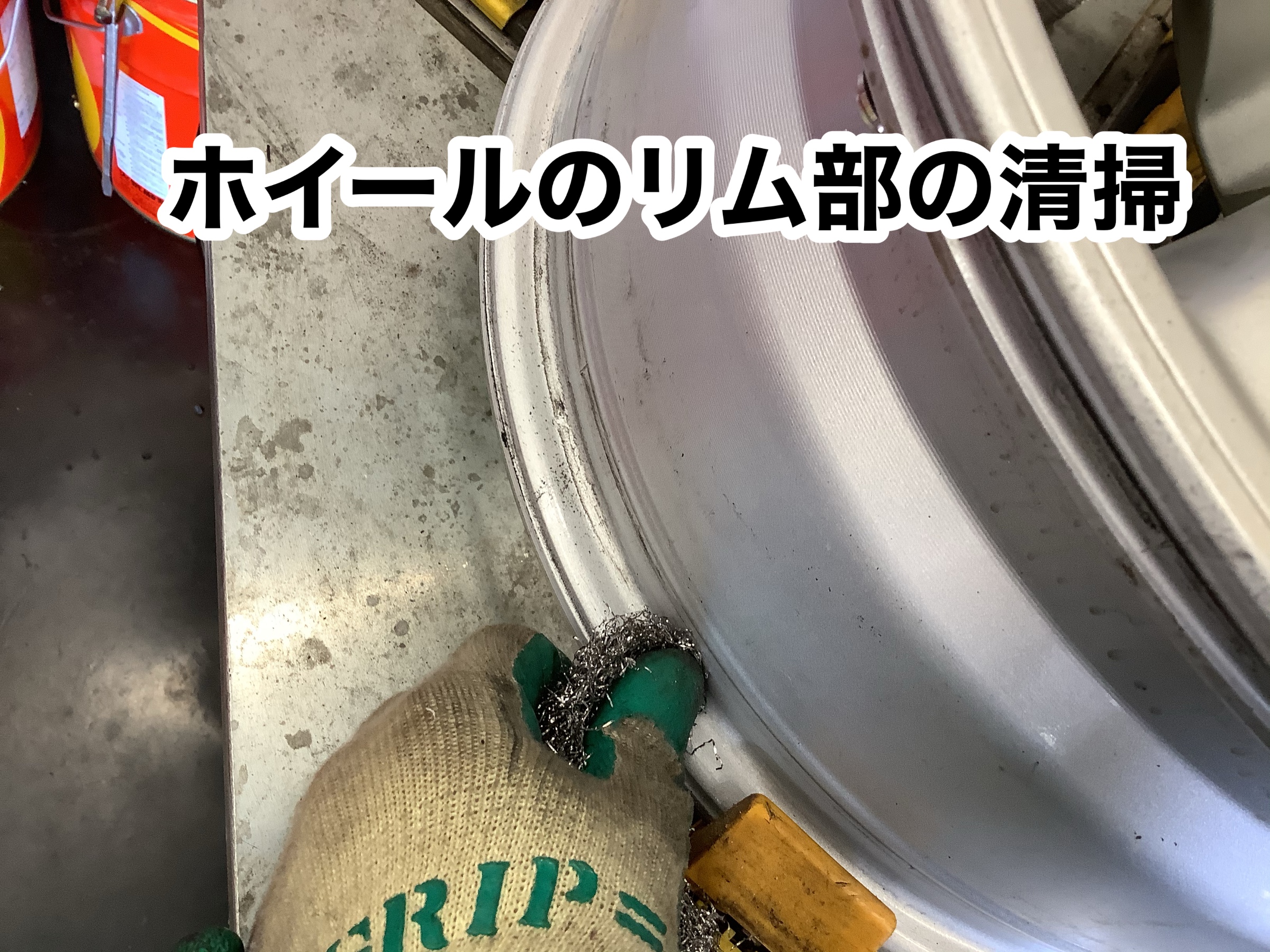 ホイールリム部の清掃して
