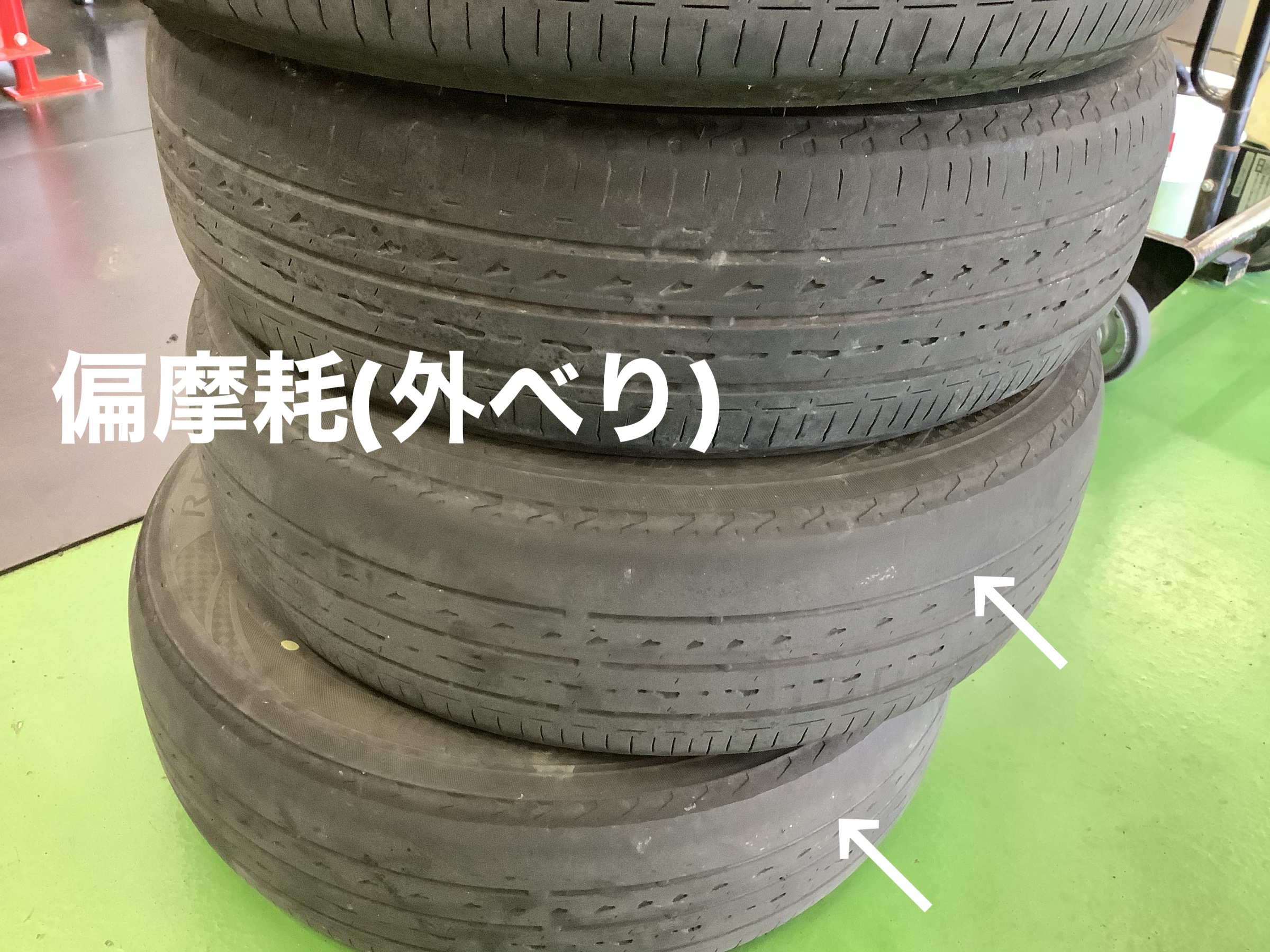 タイヤを点検させていただくと、
