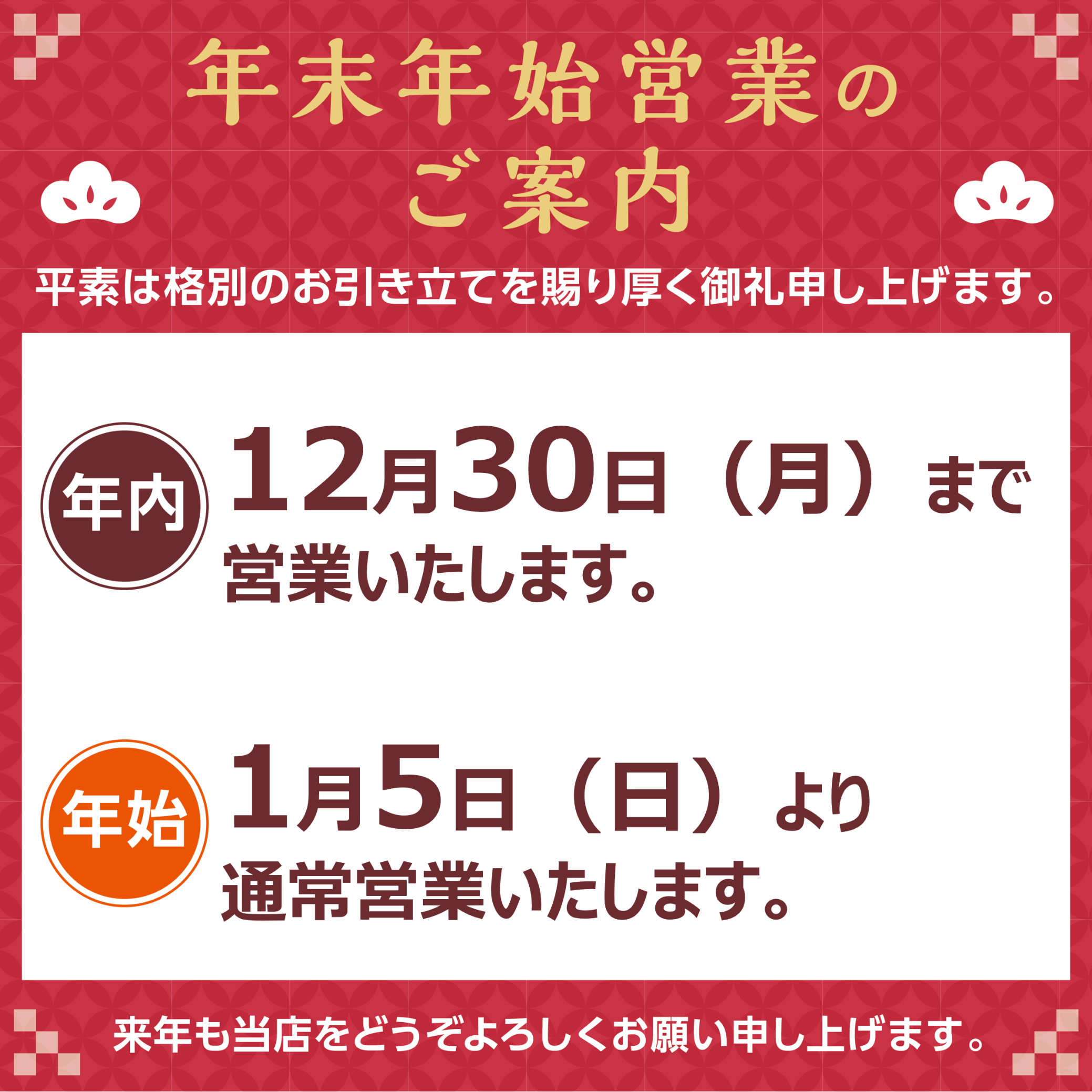 初売り 1月5日より