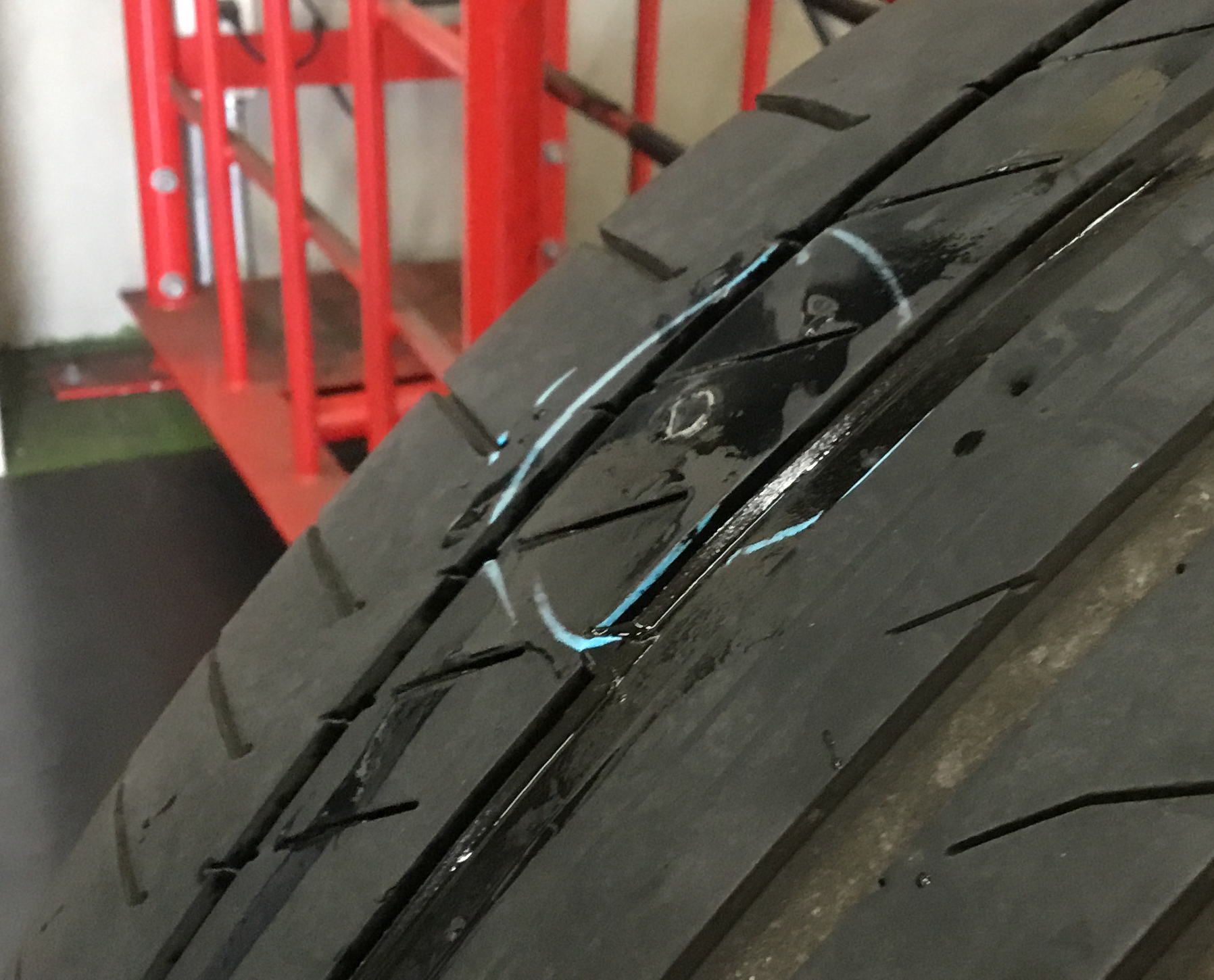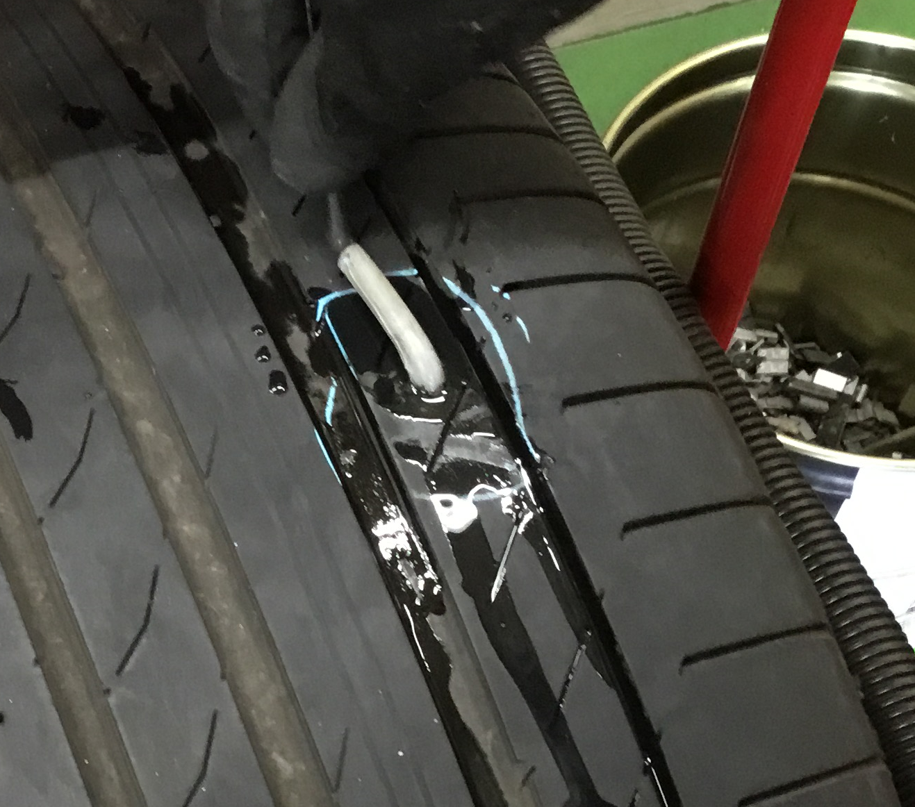 削ったタイヤ組織から空気が漏れないようにします。