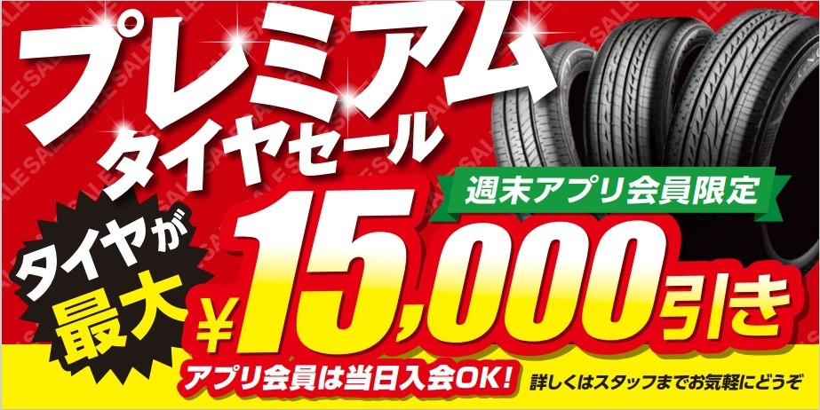 ブリヂストンのタイヤが最大15,000円引きに!(税込)