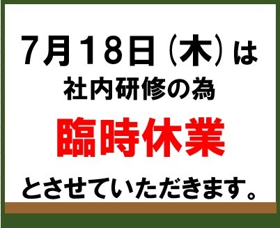 【お知らせ】7月18日臨時休業について ポスト 2024年7月13日 いつも当店をご利用いただきありがとうございます。 タイヤ館大垣 です 2024年7月18日(木)は 誠に勝手ながら社員研修の為、 臨時休業させていただきます。 お客様には御不便・御迷惑を御掛け致しますが、 何卒御理解賜ります様お願い申し上げます。 タイヤ館大垣 店長 沖野 担当:おきの