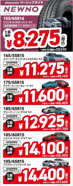 ブリヂストン製で評判の高い、「NEWNO」と「ECOPIA」を