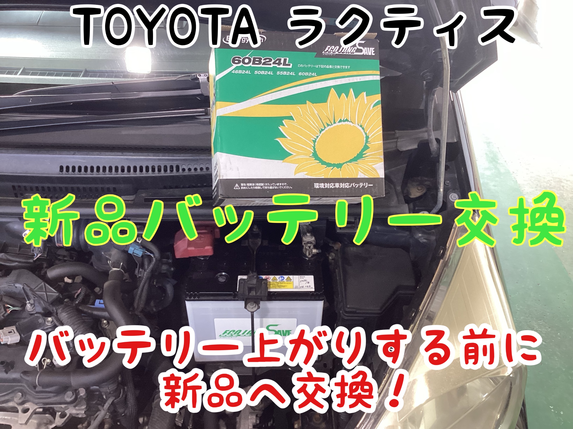 「トヨタ ラクティス」新品バッテリー「エコロングセーブ 60B24L」交換☆