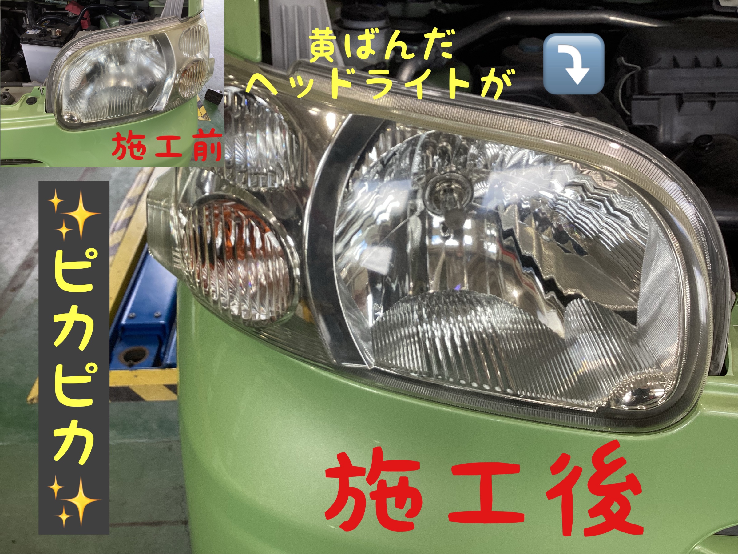 ヘッドライトコーティングもお任せください!
