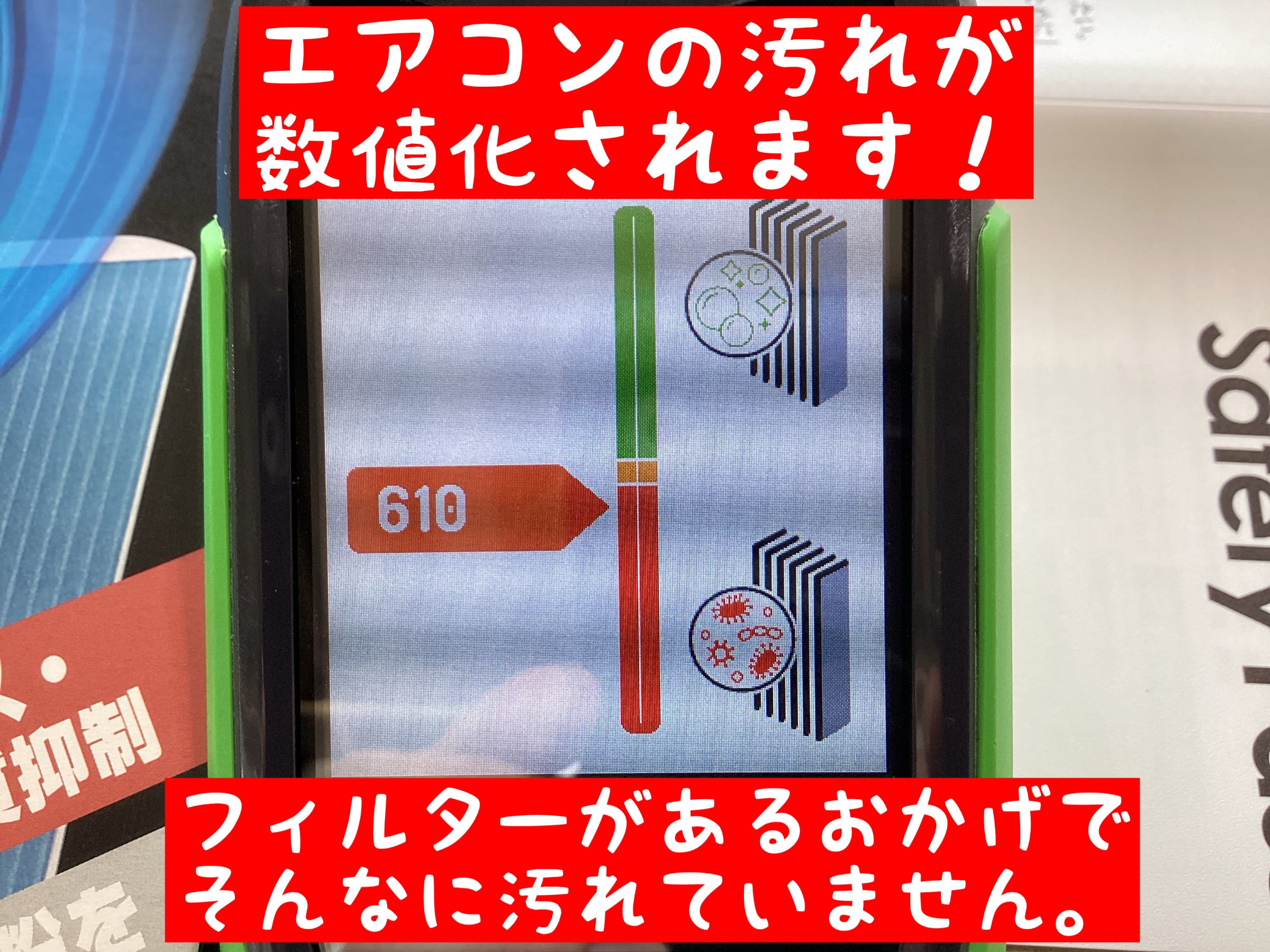 作業前にエアコンの汚れを数値化します!