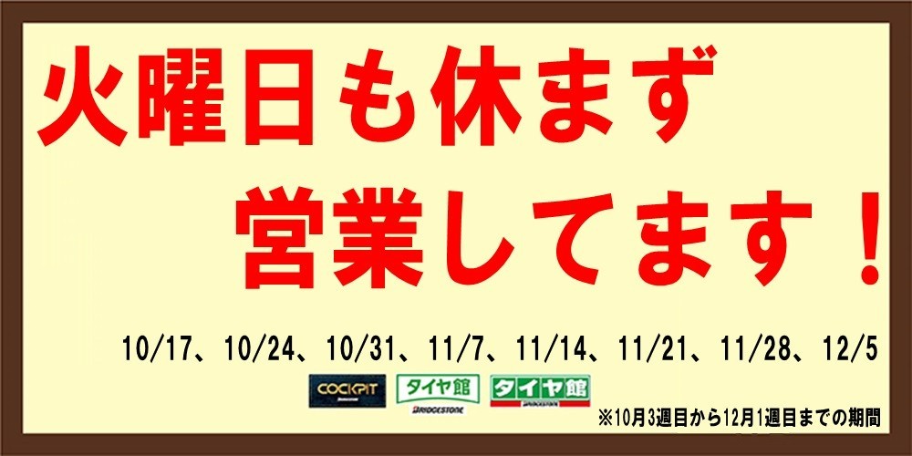 営業日のお知らせ【火曜日も休まず営業します!】