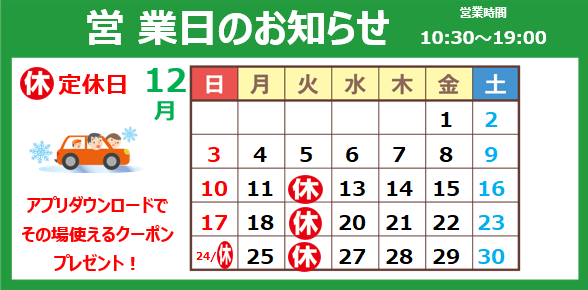 12月は12日(火)19日(火)26日(火)31日(日)