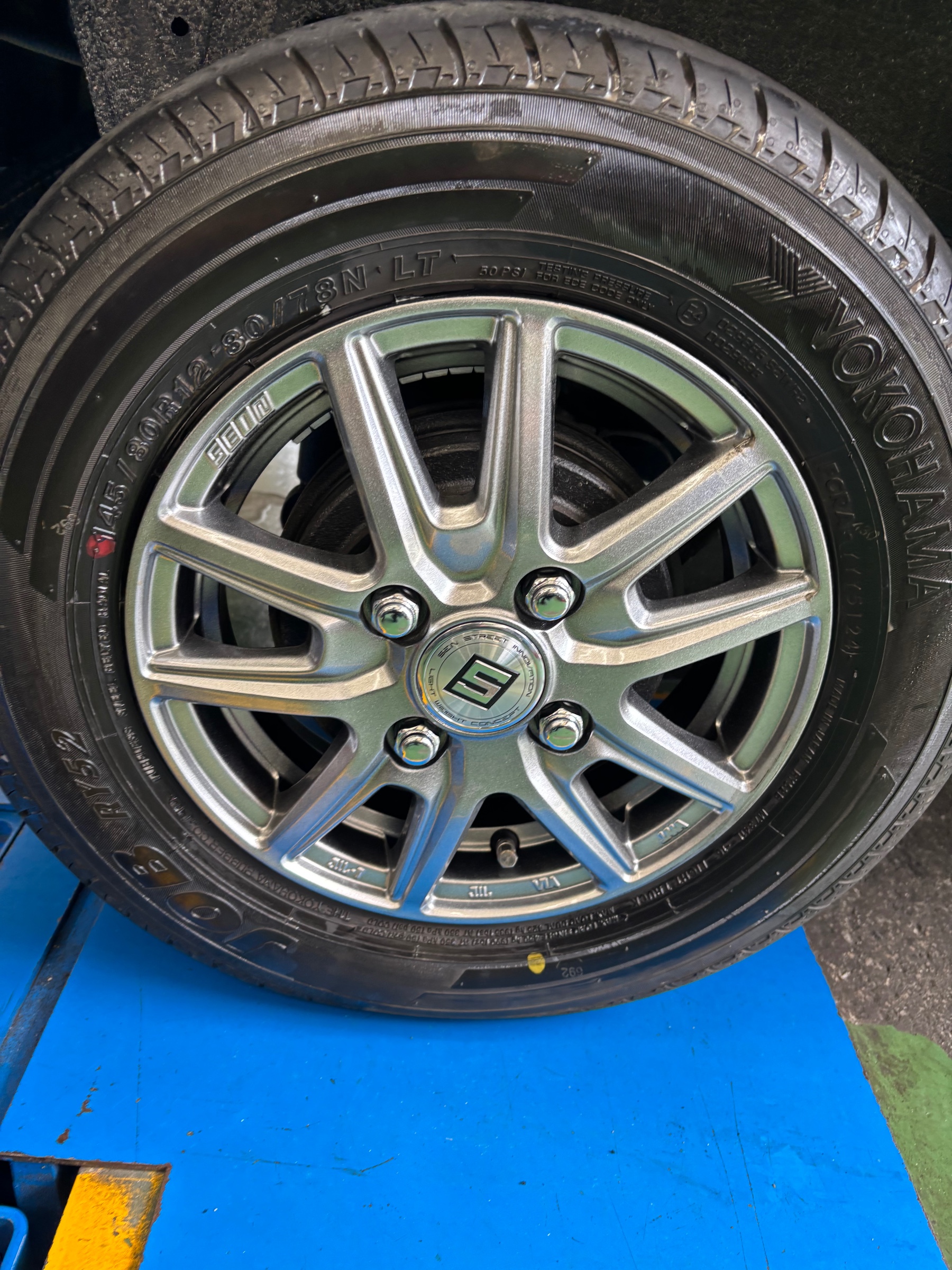 ホイール取り付け ポスト 2025年4月7日 こんにちは^_^ 今回は、ダイハツ ハイゼットに キョホー SEIN SS 12x3.5J➕45の ホイール取り付けを行いました❗️ ホイールの取り付け、見積もりは ぜひタイヤ館へ 担当:川一