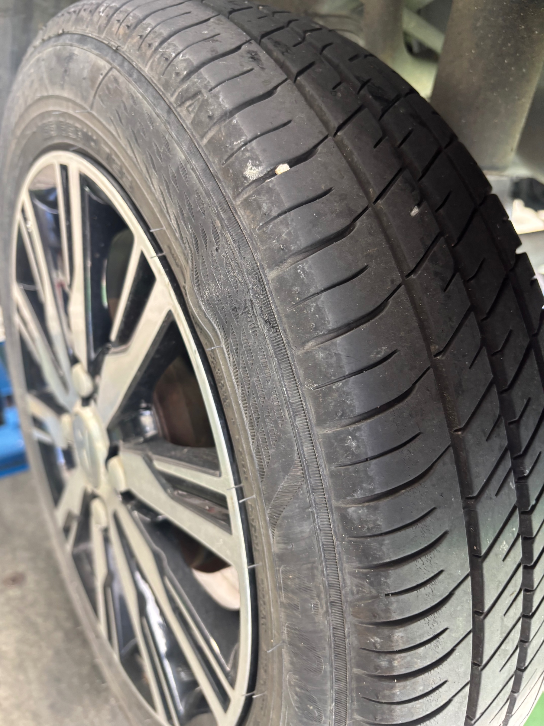 大変危険! ポスト 2025年6月11日 こんにちは! タイヤの膨らみは、一般的に「ピンチカット」と呼ばれ、タイヤ内部のコード層が切れて発生する現象です。放置するとバーストのリスクが高まり、非常に危険です。見つけたら速やかにタイヤ交換が必要です タイヤの交換、見積もりはぜひタイヤ館へ 担当:川一