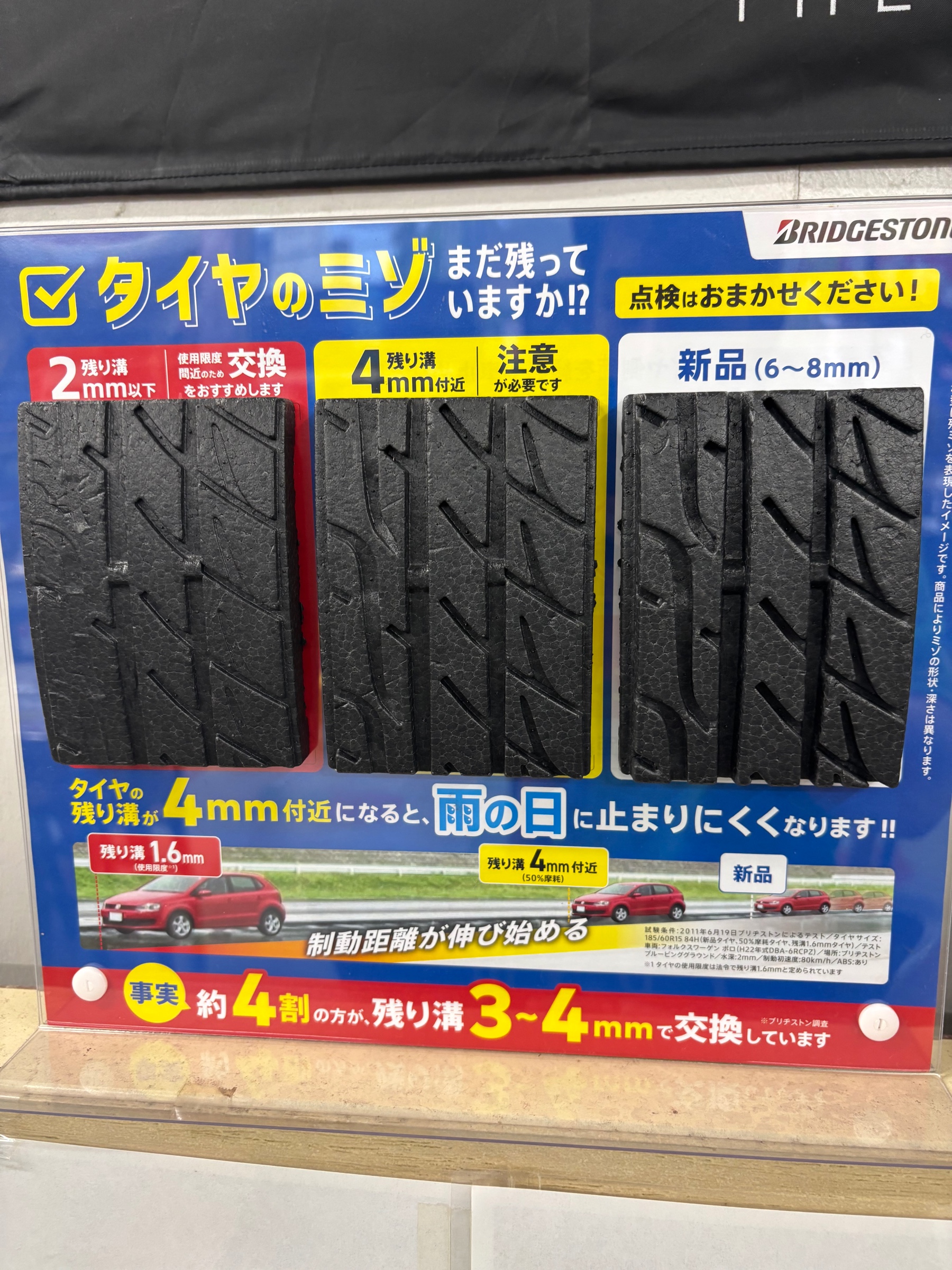 タイヤの溝まだ残っていますか? ポスト 2025年11月2日 こんにちは^_^ 愛車のタイヤの溝まだ残っていますか? スリップサインを確認するタイヤの溝の深さが1.6mmになると、溝の中に スリップサインという印が現れます。 このサインがでたら交換時期です。 タイヤの見積もり、交換は ぜひタイヤ館へ 担当:川一
