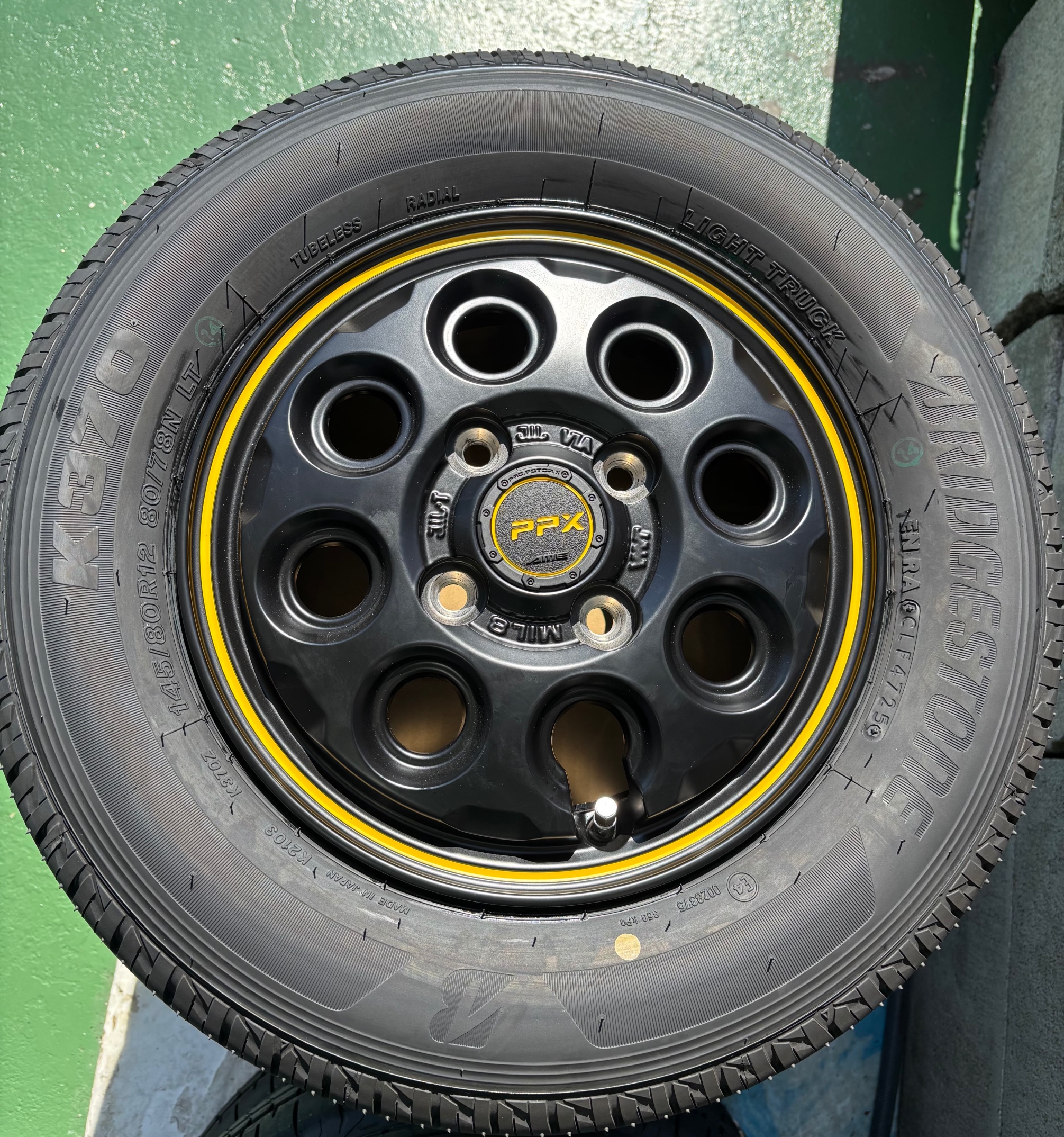 タイヤ、ホイール取り付け ポスト 2026年2月8日 こんにちは^_^ 今回は日産、クリッパーに PPX MIL:8 12x3.5J PCD100 45 4Hの ホイール取り付けを行いました❗️ タイヤはブリヂストンの 貨物用タイヤK370 145/80R12をチョイス❗️ ホイールの見積もり、交換は ぜひタイヤ館へ 担当:川一