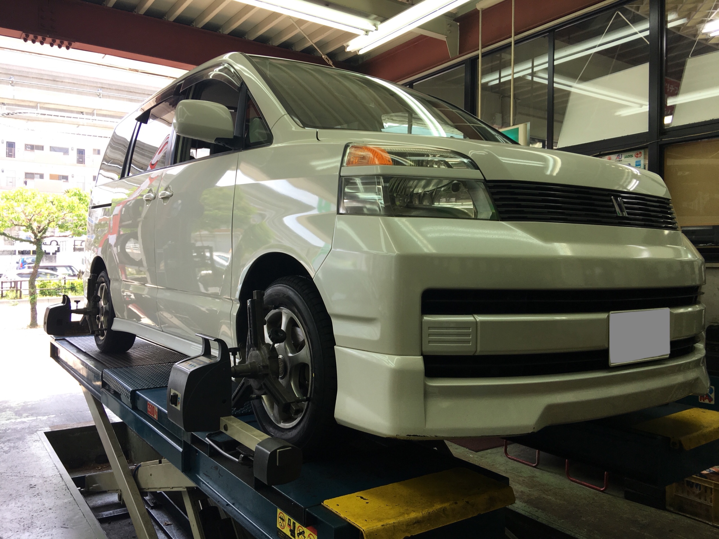トヨタのミニバン、ヴォクシー タイヤ交換とアライメント調整の為入庫しました(´∀`)