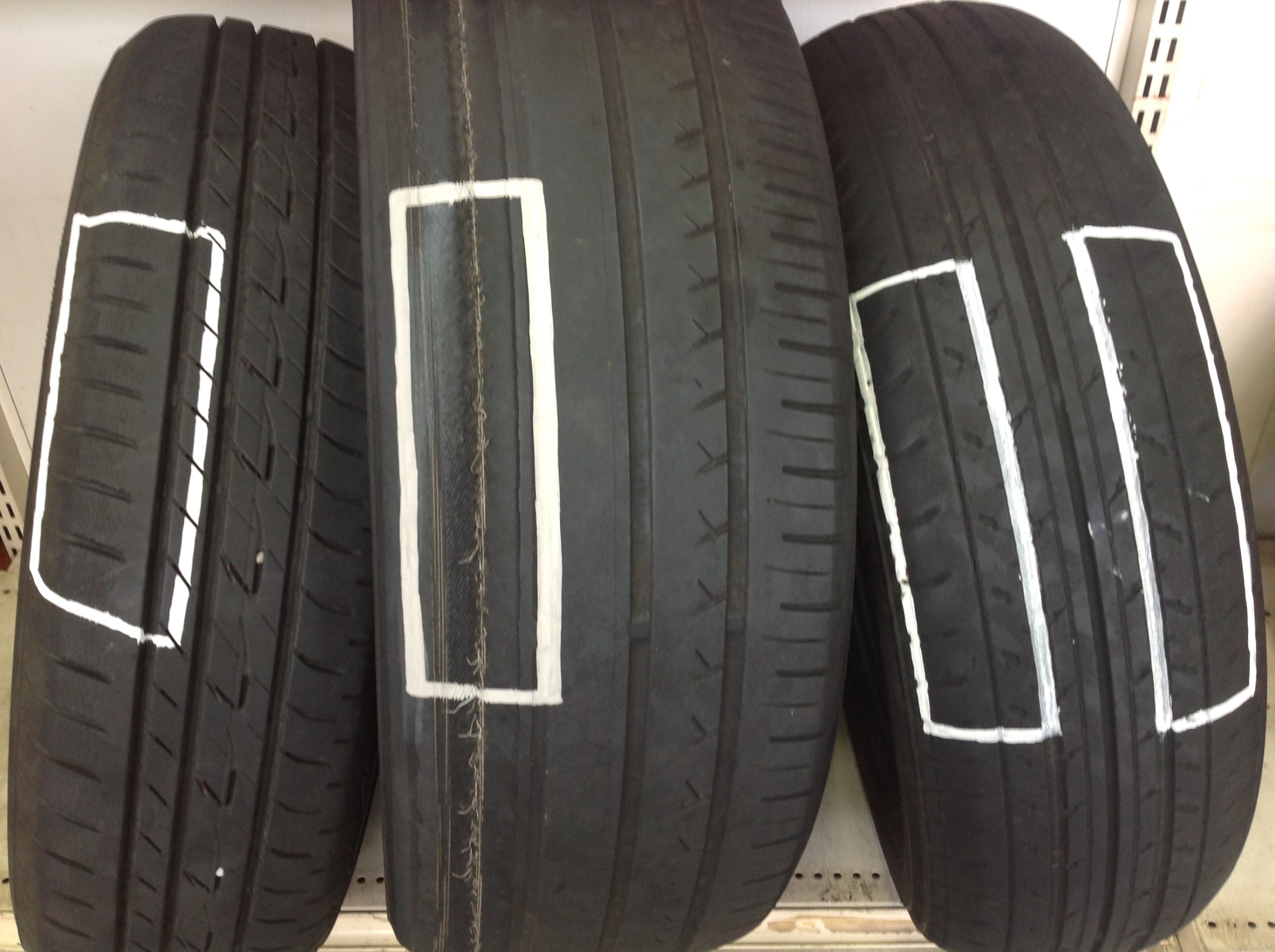 タイヤの点検はしていますか?上の画像の用に片べりや溝が減っていませんか?