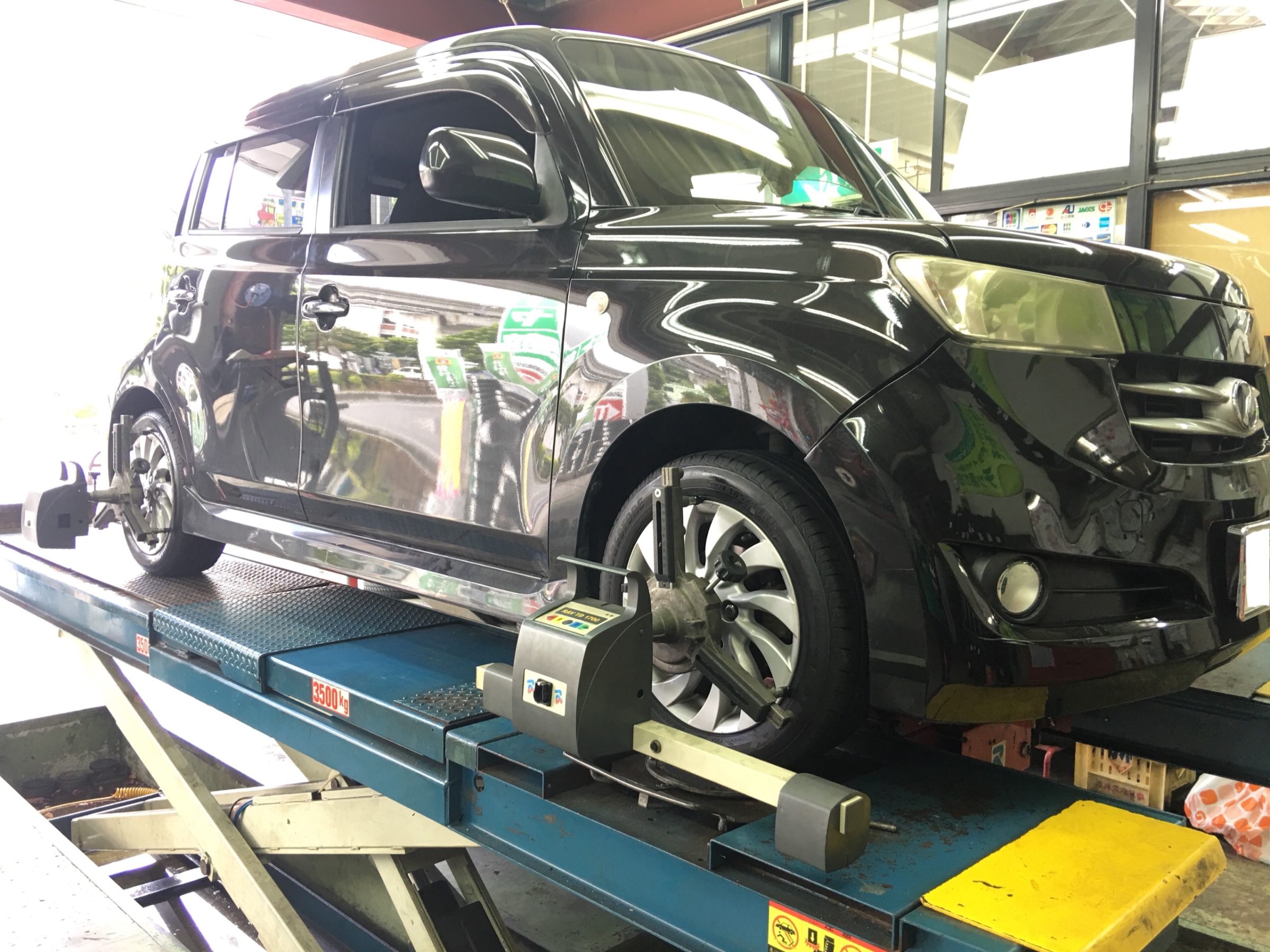 タイヤ交換後にアライメント調整(車軸の調整)します〜( ̄∀ ̄)
