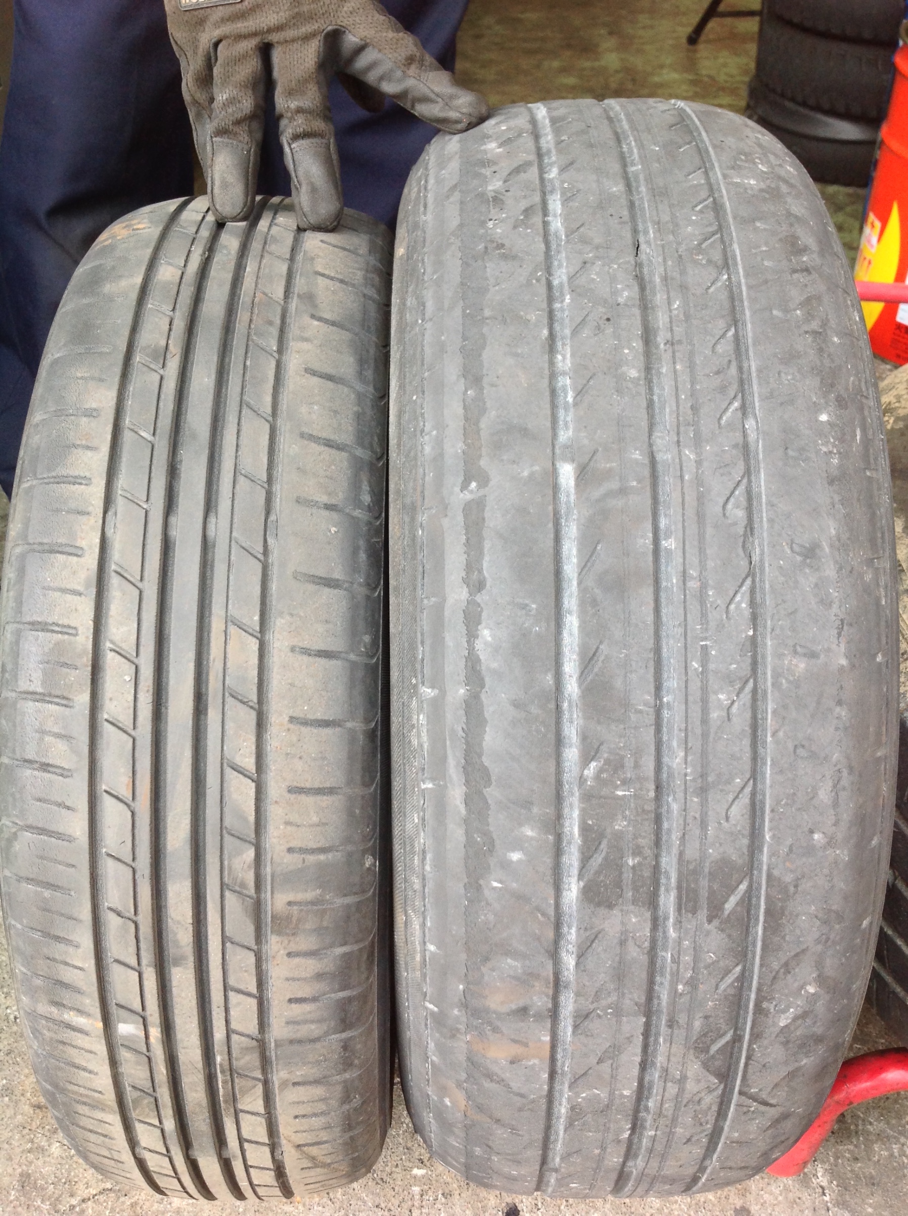 空気圧は点検していますかー? ポスト 2019年3月1日 こんにちはー(^^) みなさんは空気圧は ちゃんと点検していますか? 空気圧を点検していないと、上の画像のように 両外側のミゾが早くなくなり タイヤ交換を早めにする事になります(;_;) 上の画像のタイヤは まだ約2年しかたってない交換時期が一緒のタイヤでも外側が全然ちがう 空気圧は1ヶ月〜3ヶ月の間にきちんと 空気圧を点検しておけば大丈夫です! 担当:川ー