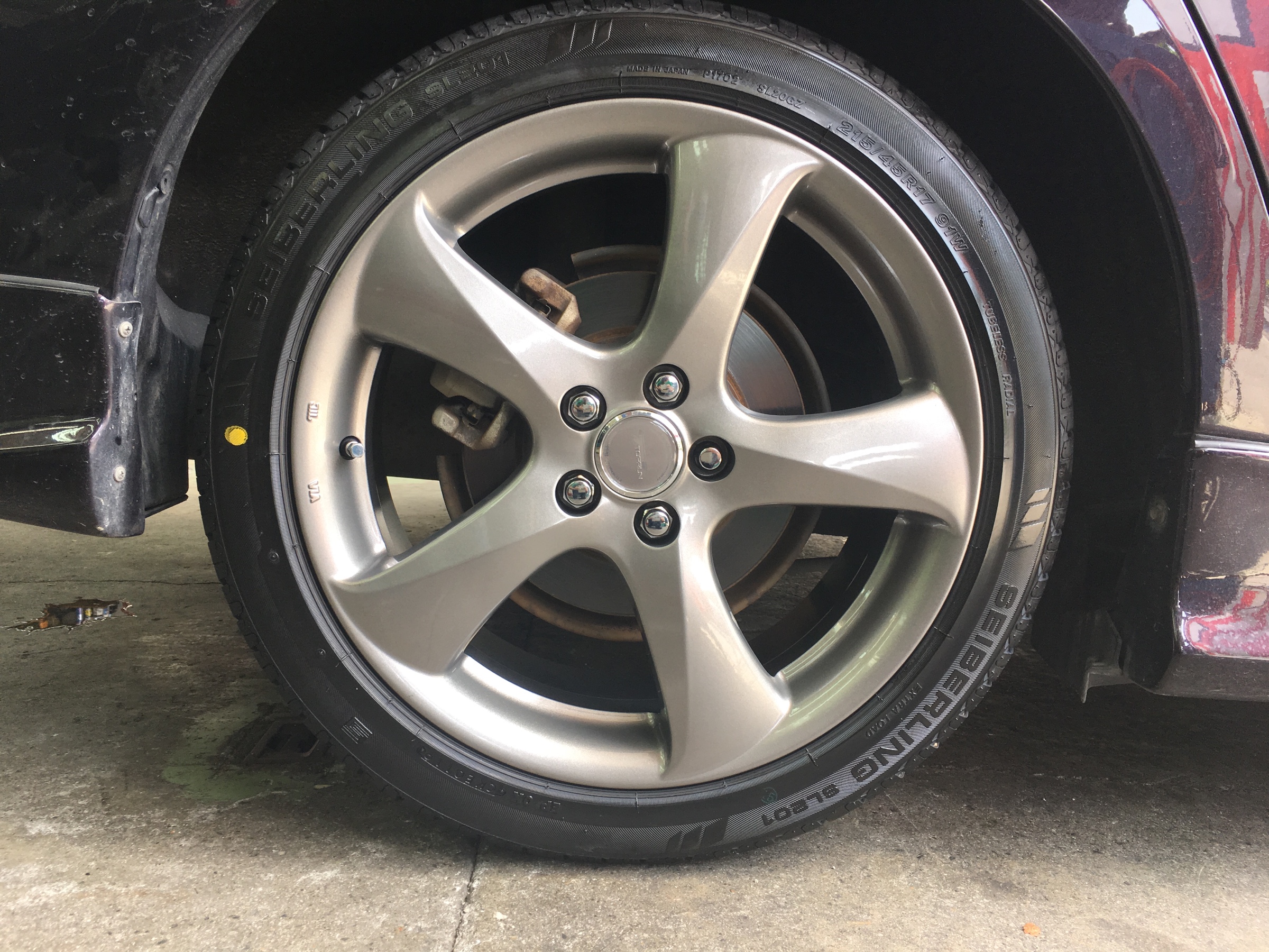 アルミホイール取り付け ポスト 2019年5月21日 トヨタ:プリウス30 ホイール:ブリヂストン:トップランRD5、17インチ タイヤ:セイバーリングSL201:215/45R17 ありがとう御座いました。 担当:伊覇