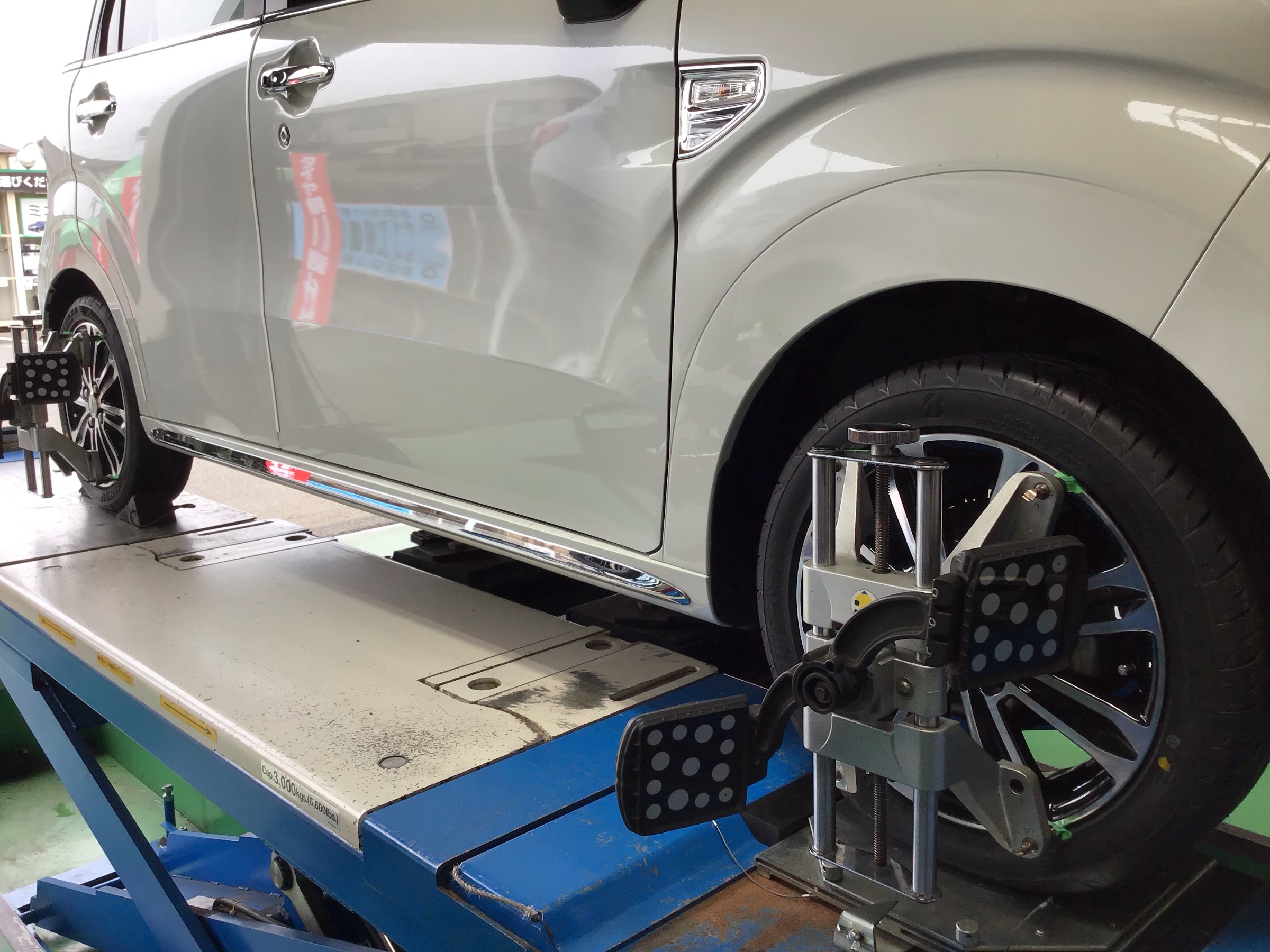 タイヤ交換終了後にアライメント測定・調整をさせて頂き作業完了となります。