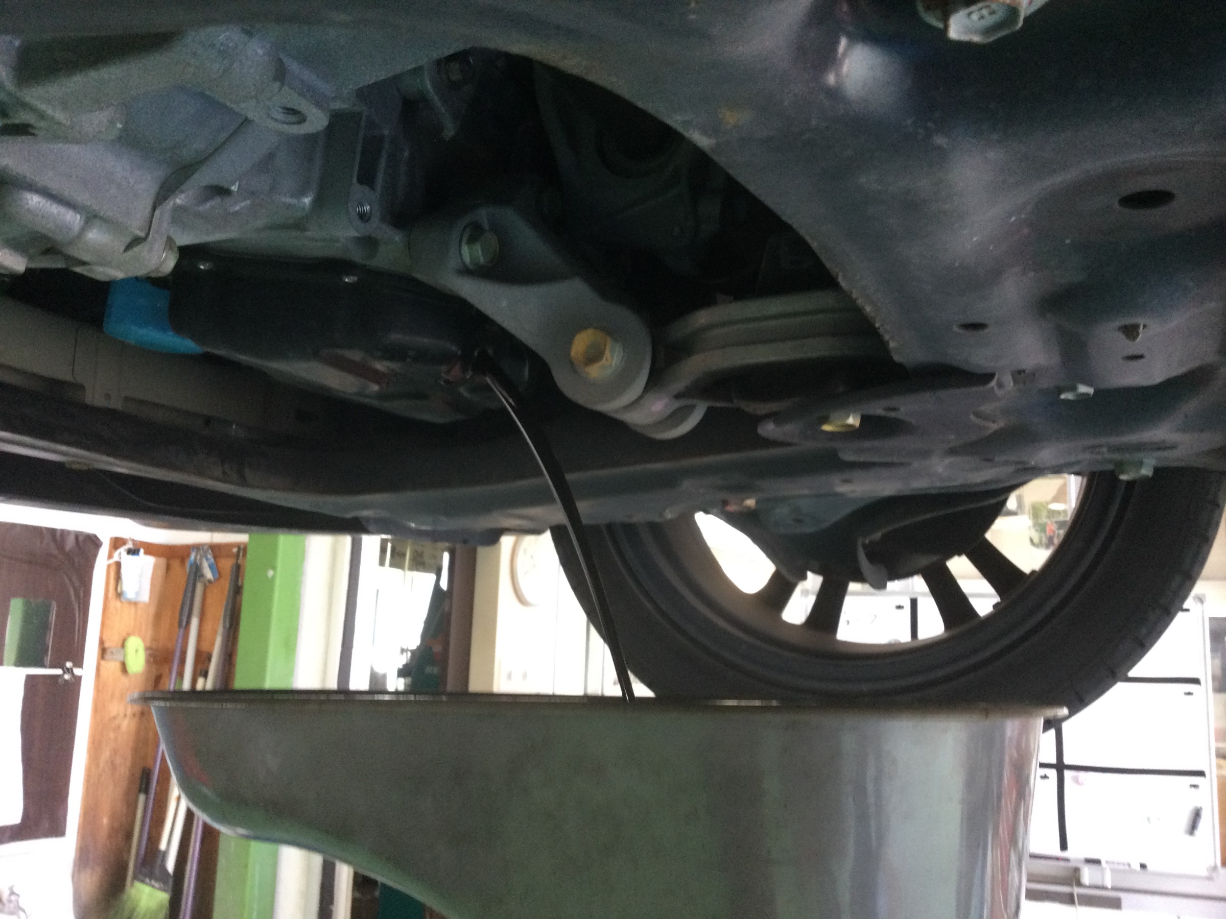 エンジン始動後ドレンボルトからの漏れ、滲みが無いか確認し作業完了です。