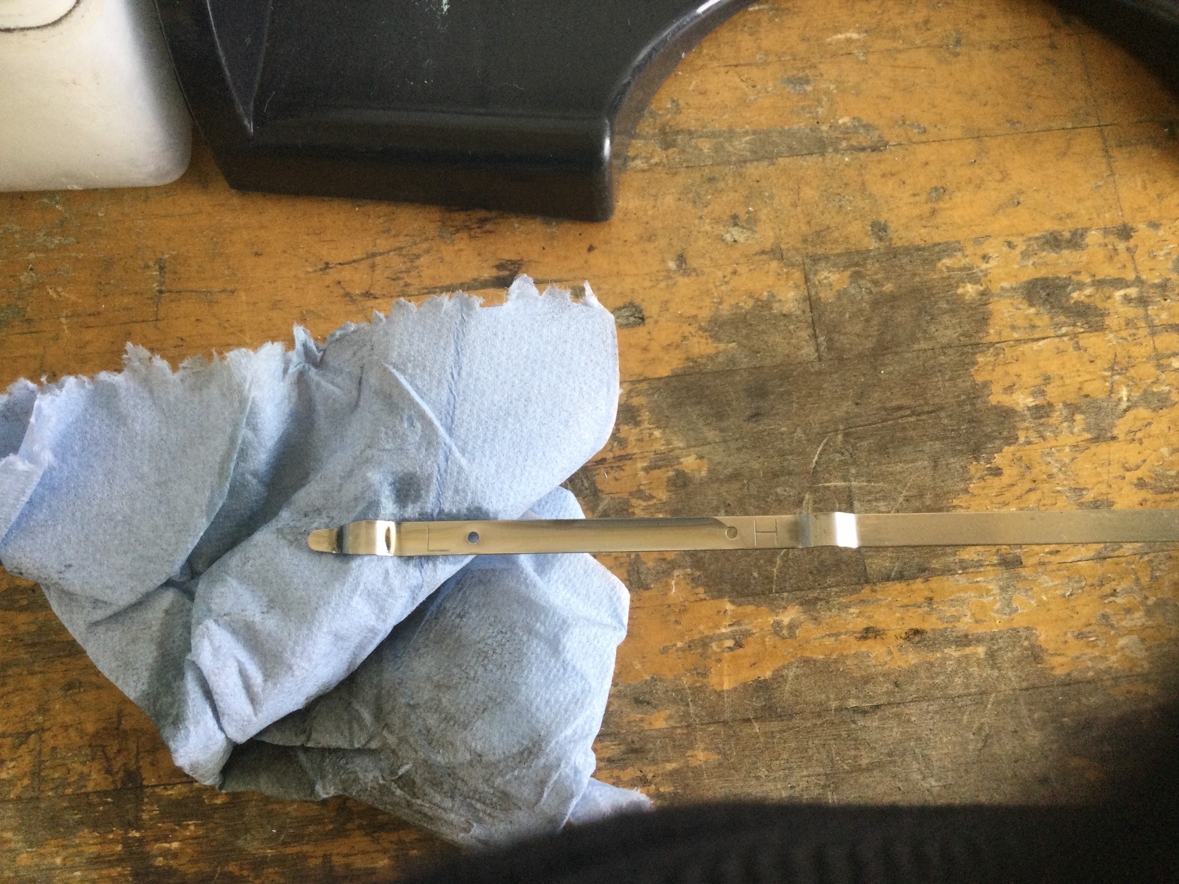 ドバァーと古いオイルが出てきます。半年前の交換、距離は約3,000km走行です。