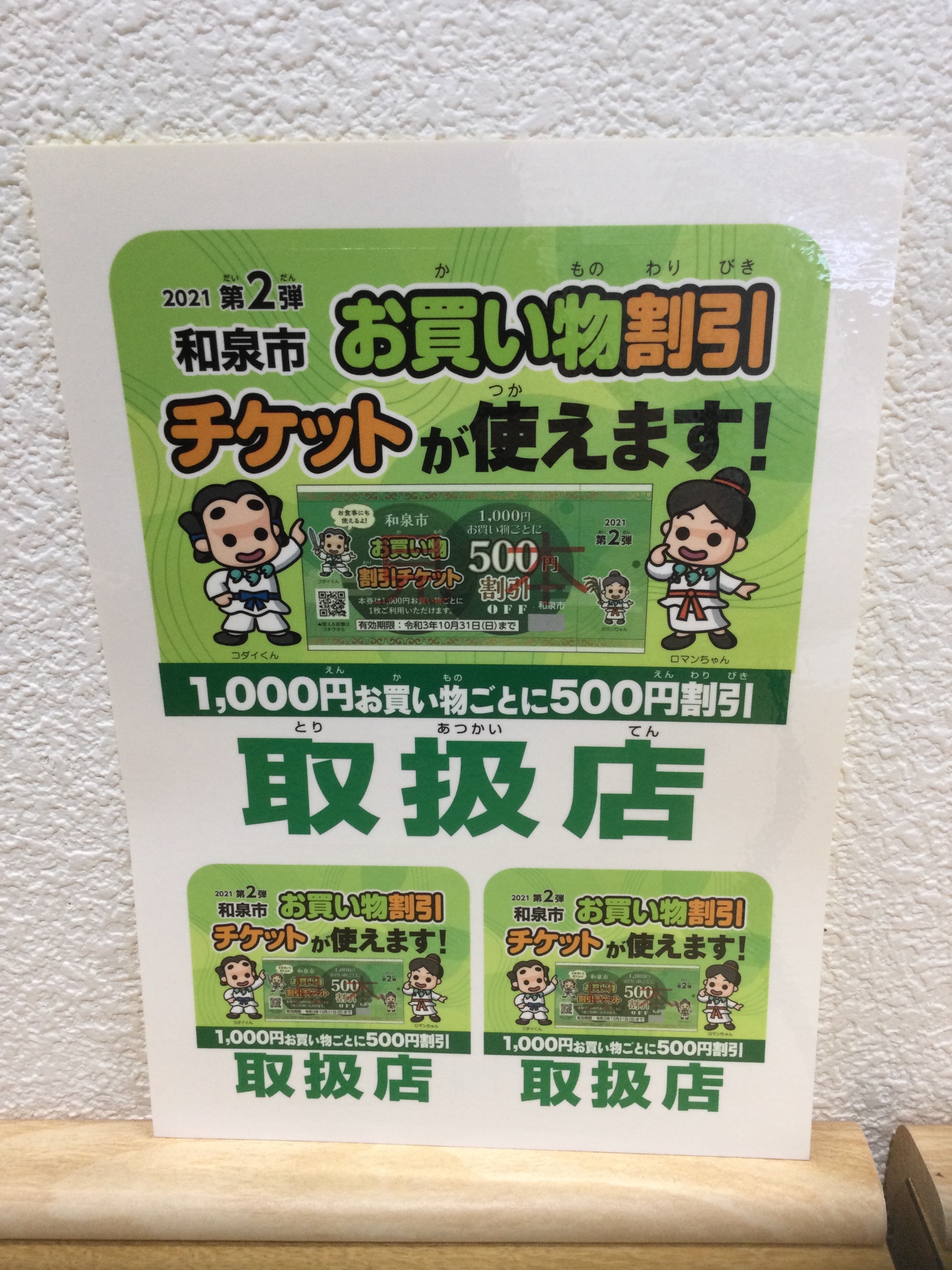 和泉市お買い物券 ポスト 2021年5月15日 こんにちは! タイヤ館和泉の日記をご覧頂きありがとうございます♪ 本日は和泉市お買い物券のご使用のご案内です。 5月23日〜10月31日まで当店でも和泉市お買い物券第2弾をご使用頂けます. タイヤ交換やオイルなど全ての商品にご使用頂けますので是非ご利用ください。 和泉市 お買い物券 第2弾 担当:古川